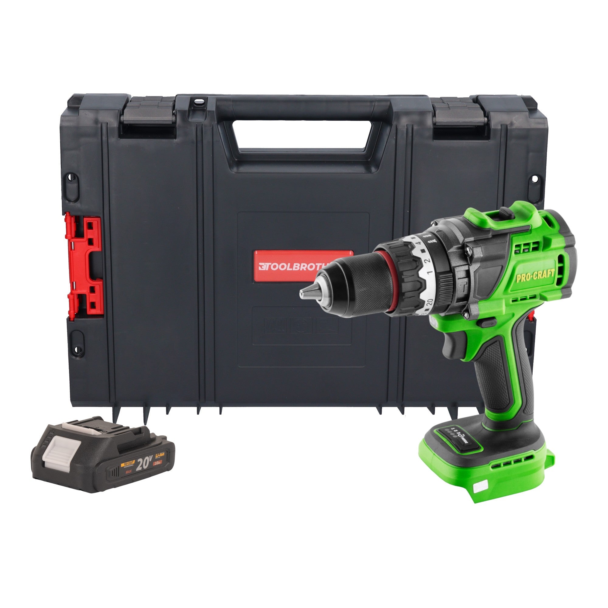 Procraft PA18ProBL-BB Akku Schlagbohrschrauber 20 V 180 Nm Brushless + 1x Akku 2,0 Ah + RHINO Toolcase - ohne Ladegerät