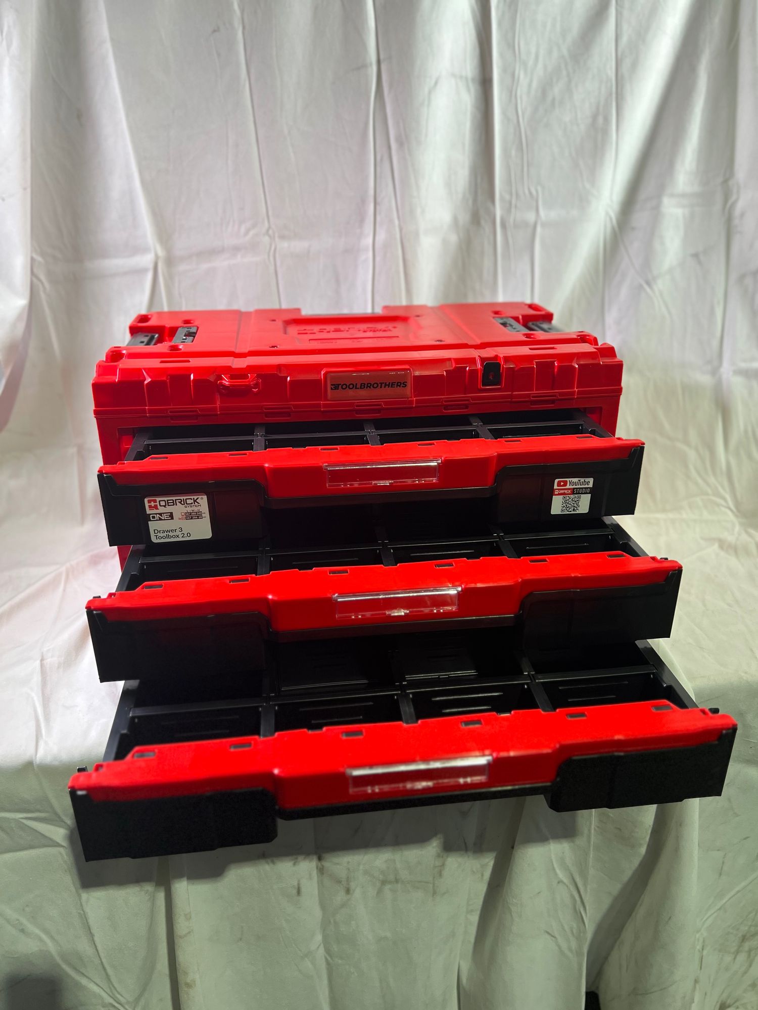 - 1x Qbrick System ONE Drawer 3 Toolbox 2.0 Red Ultra HD Werkzeugbox 587 x 380 x 340 mm