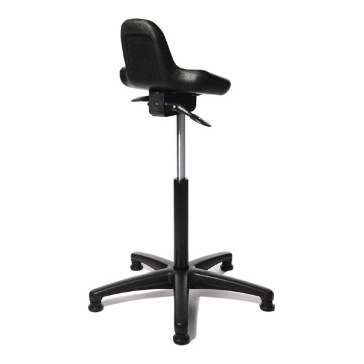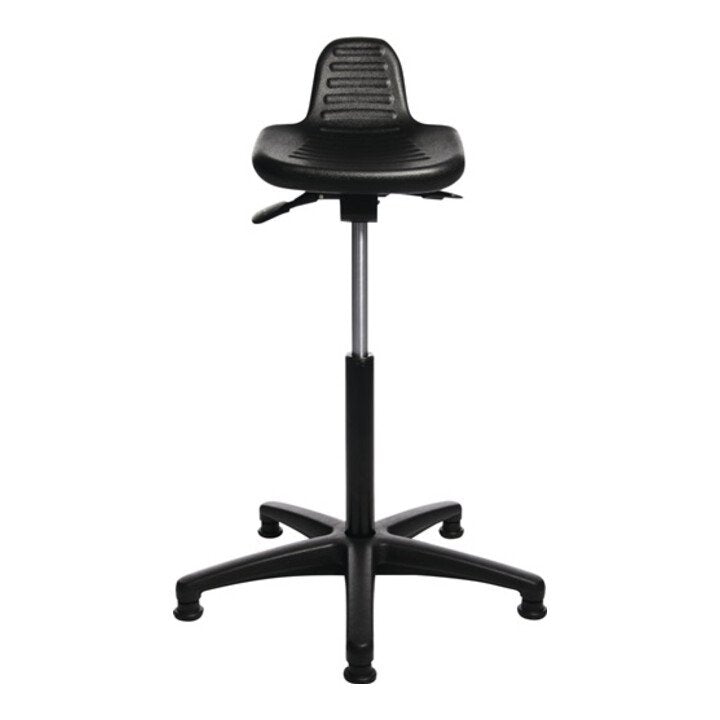 Impiego universale - regolazione dell'altezza del sedile con molla a gas di sicurezza H 550-810 mm - sedile ergonomico in espanso integrale - regolazione dell'inclinazione del sedile tramite leva manuale - base in plastica a cinque stelle stabile e resistente all'inclinazione, nera con piedini di scorrimento