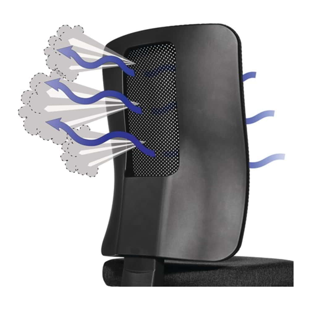 con tecnologia sincronizzata (senza braccioli) - per lavorare prevalentemente seduti - robusta base in poliammide nera - schienale con rivestimento in rete nera traspirante, regolabile in altezza e inclinazione - sedile piatto regolabile in altezza, con bordo anteriore arrotondato - rivestimento 100 % polipropilene, rete 100 % poliestere - superficie di seduta L 480 x P 480 mm - altezza schienale 580 mm - rotelle per pavimenti morbidi - consegnato smontato