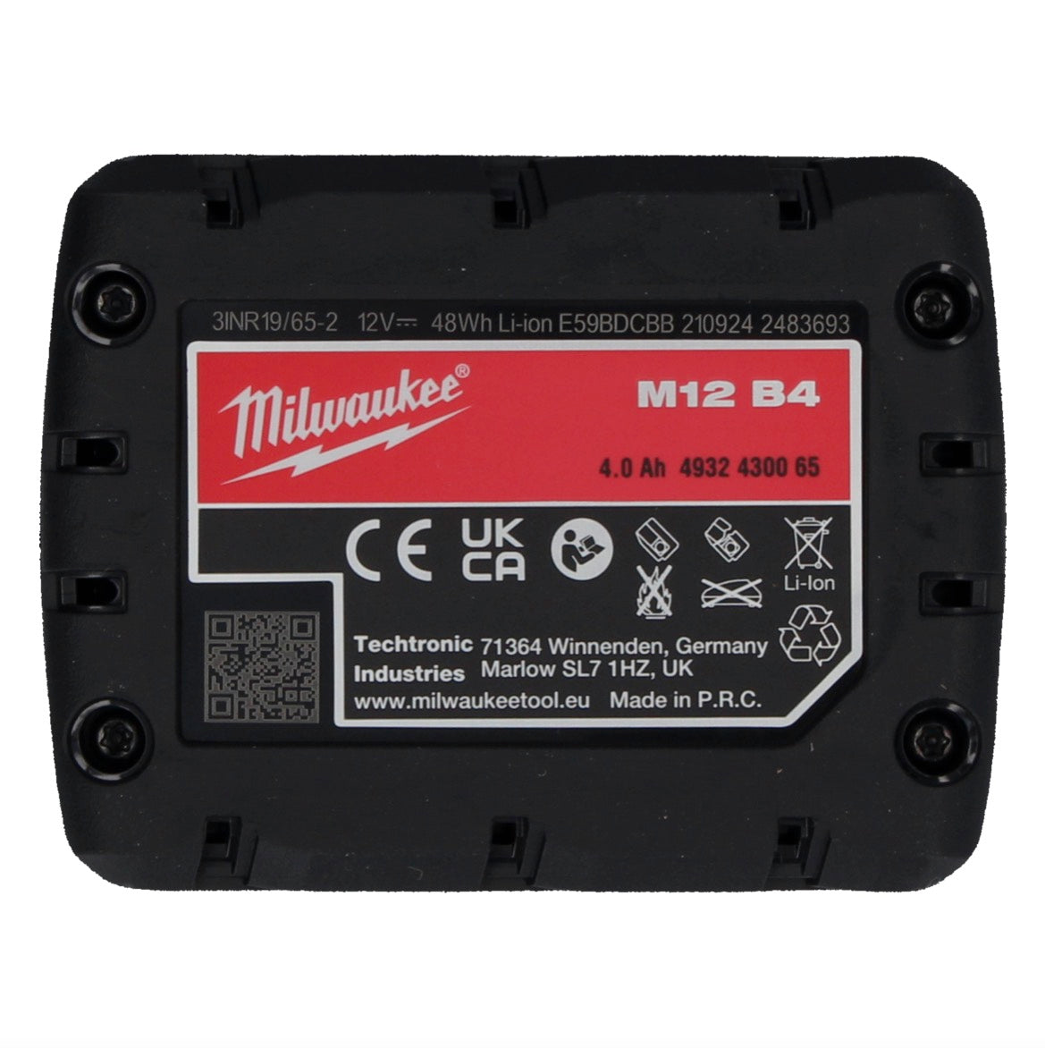 Set di batterie Milwaukee 2x M12 B4 12 V 4,0 Ah / 4000 mAh Li-Ion a scorrimento ( 2x 4932430065 )