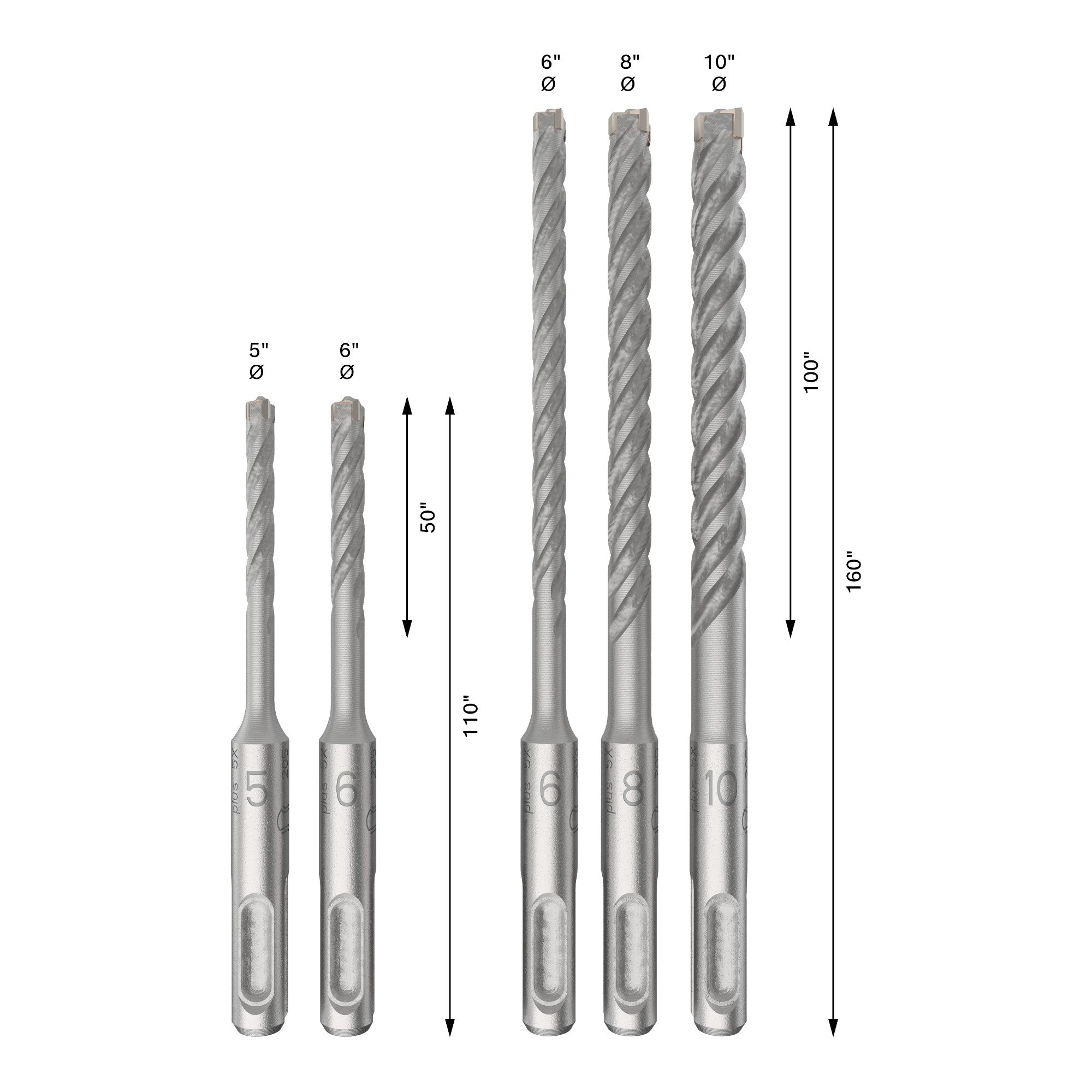 - 5x punte per trapano a percussione Bosch PRO SDS Plus-5X 5 / 2x 6 / 8 / 10 mm ( 2608833910 )