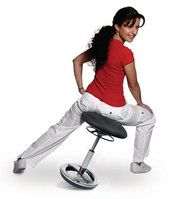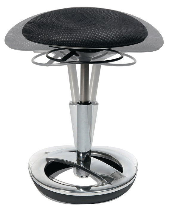 uso versatile, per una seduta ergonomica e flessibile - anello di base in alluminio lucidato - effetto di oscillazione orizzontale grazie a un elemento pneumatico mobile in TPU (poliuretano termoplastico) - regolazione continua dell'altezza del sedile tramite leva di sblocco ad anello sotto il sedile - sedile Ø 365 mm - altezza del sedile 440 - 570 mm