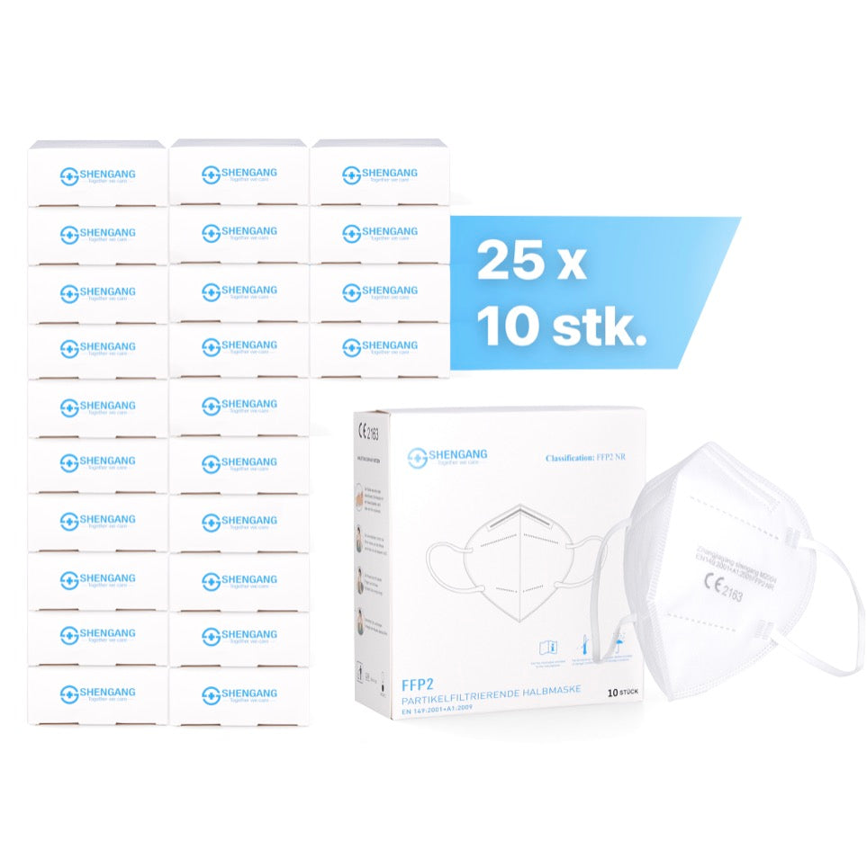 Shengang 250x FFP2 Maske CE zertifiziert Apotheken konform Mund Atem Nasen Schutz 5-Lagig ISO9001:2015 / EN149 2001 A1:2009