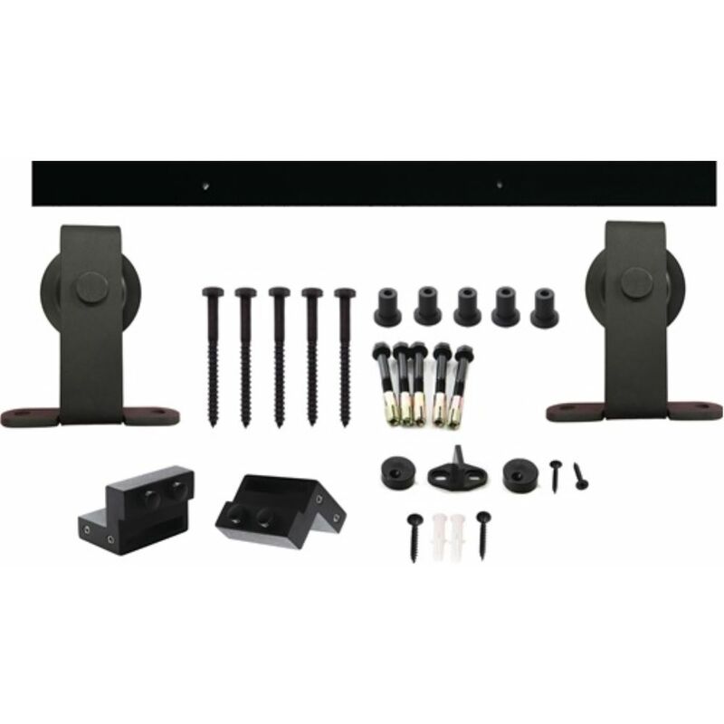 Set completo per porte in legno - il set 1 porta è composto da: 2 binari in acciaio da 1000 mm - 2 ganci in acciaio con cuscinetti - 2 fermaporta in acciaio - 2 distanziali per porte - 1 guida a pavimento per porte scorrevoli - materiale di fissaggio - per spessori di porte da 38 a 40 mm - nero