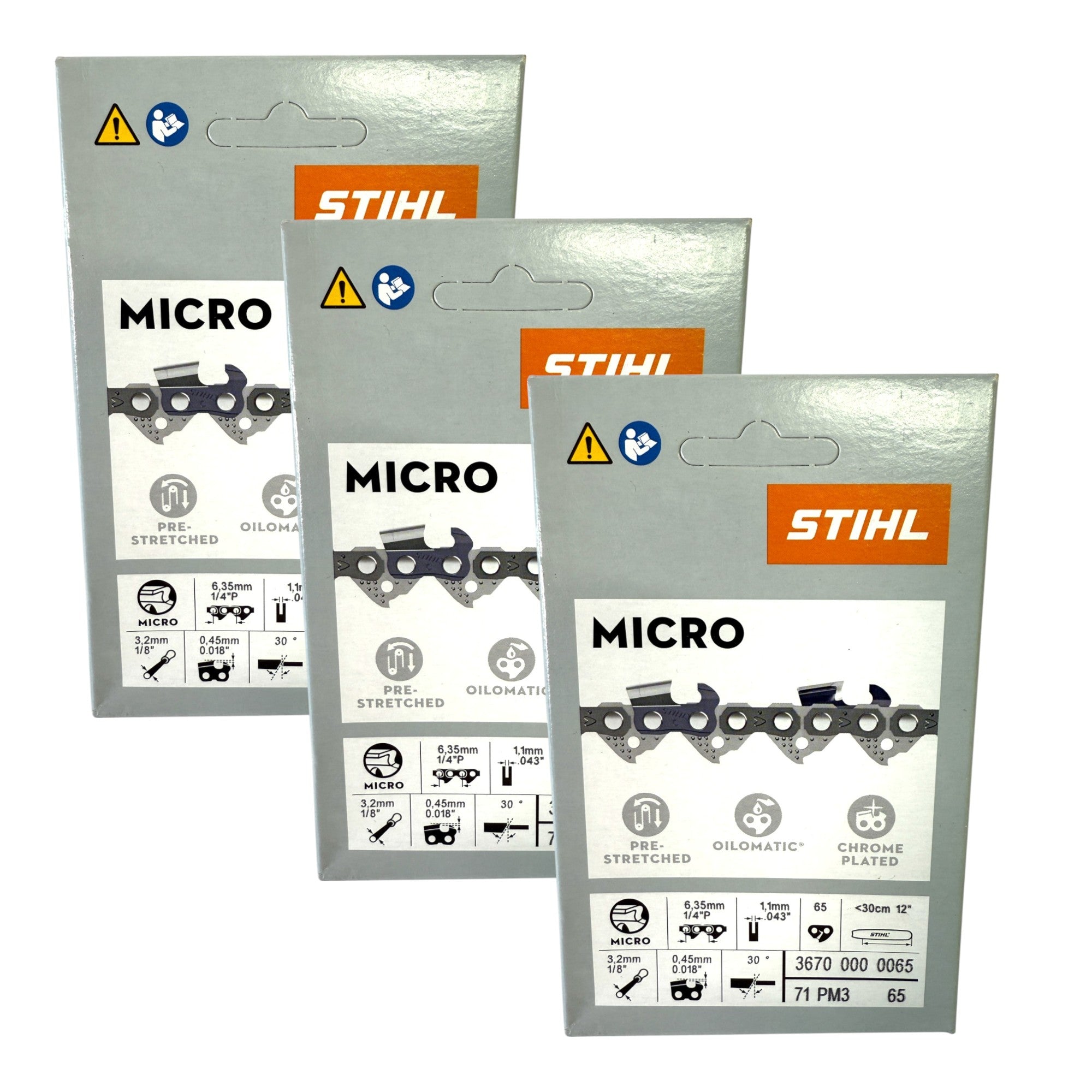 Stihl 3x 1/4" Picco Micro 3 (PM3) catena per sega 30 cm 1/4" P 1,1 mm 65 TG 3 pezzi ( 3x 36700000065 )