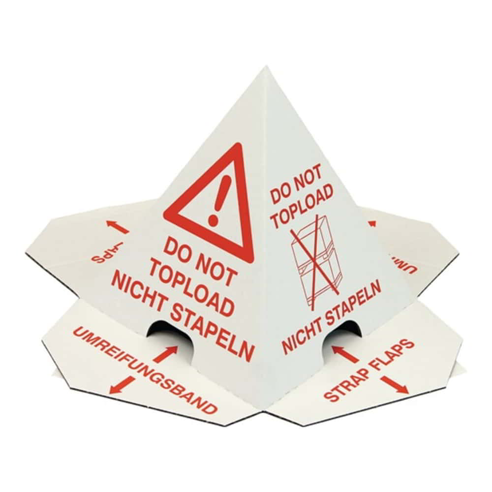 Cartone, qualità 1,25 - a 1 colore, stampato in rosso, con 2 strisce autoadesive - evita i danni da trasporto e assicura la merce - può essere fissato anche con nastro adesivo grazie alle fessure aggiuntive - consegnato piegato in piano