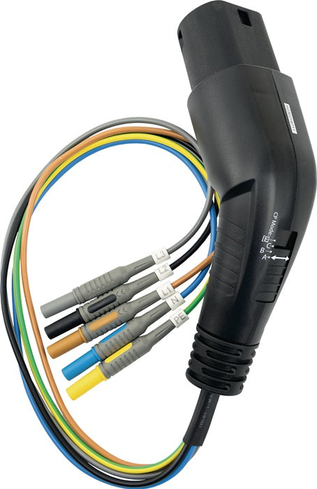- Fornitura comprensiva di adattatore per colonna di ricarica, software per PC (per la creazione di un rapporto di prova), tre morsetti a coccodrillo (verde, blu, rosso), tre cavetti di prova (verde, blu, rosso), tre sonde di prova*, commutatore di punta, cinghia di trasporto, anello, adattatore di rete, cavo USB, adattatore di prova Schuko, borsa, 6 x batteria ricaricabile, certificato di calibrazione