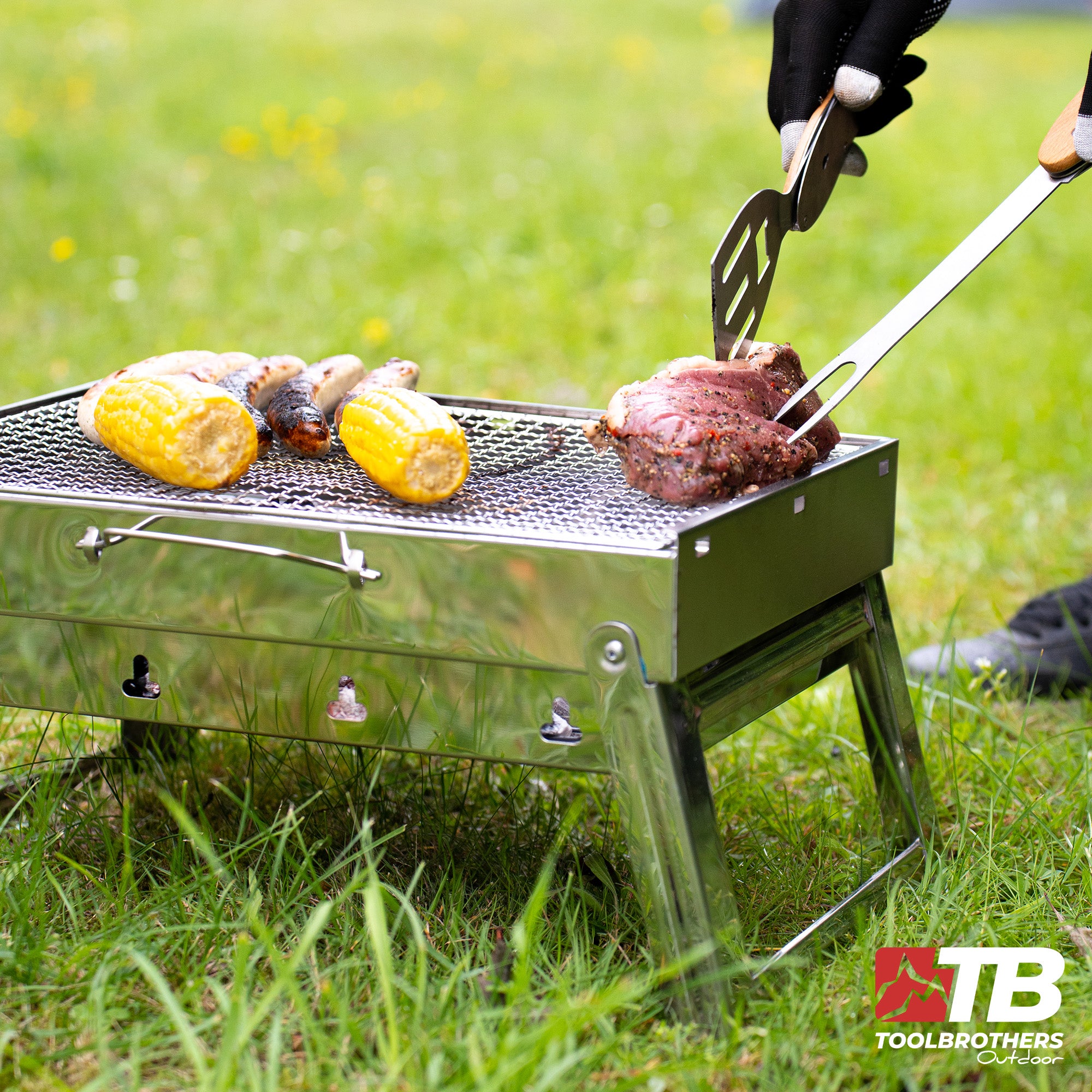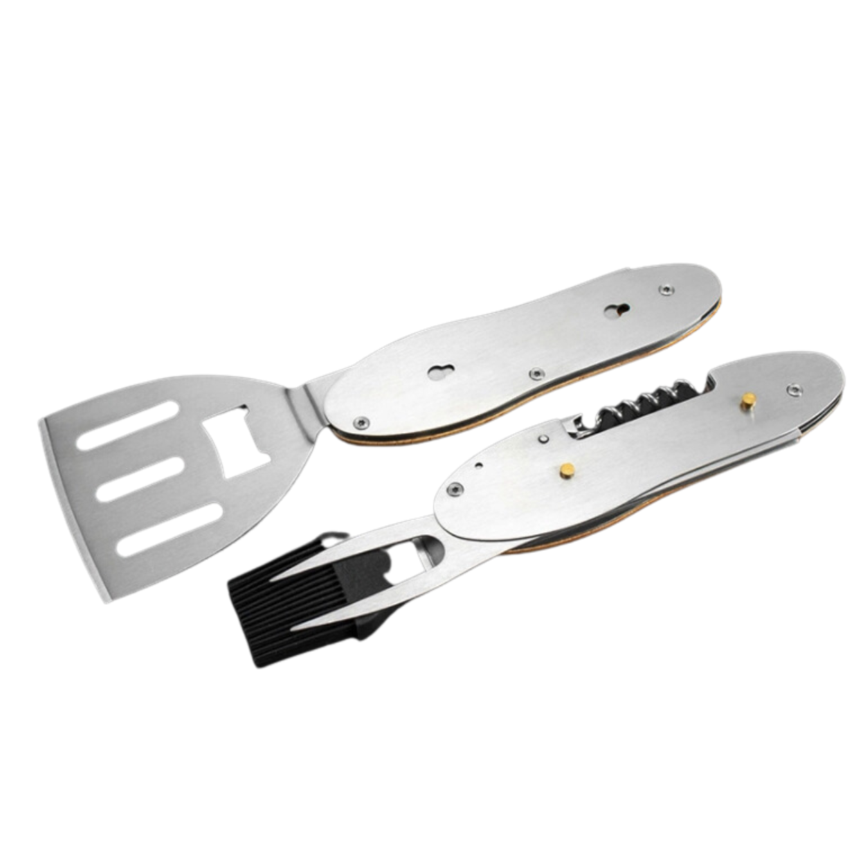Toolbrothers Outdoor Multitool Grill, Grillbesteck aus Edelstahl mit Gabel, Grilllöffel, Fleischbürste, Flaschenöffner und Korkenzieher 5 tlg