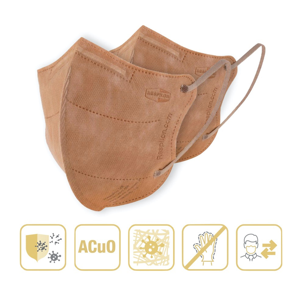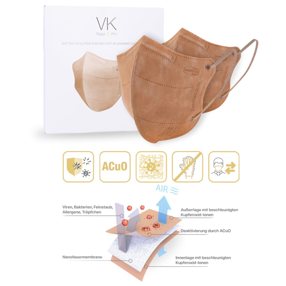 VK RespiPro Atemschutz Maske 2 Stk. Wiederverwendbar Nanofasermembran Kupferoxid Beschichtung blockiert 99,7 - 99,9% der Viren EU-Norm RFU 02.075