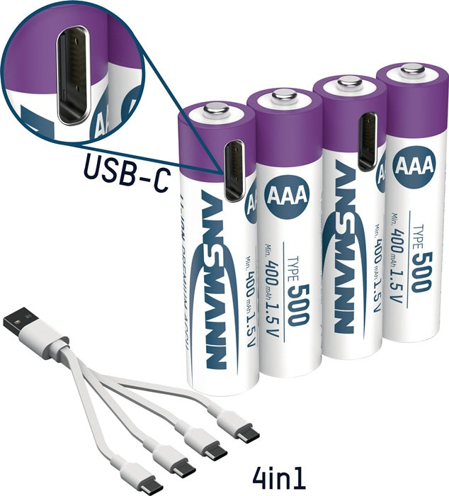 - 4x Micro AAA Li-Ion Akku 500 mAh, 4 in 1 USB-C Ladekabel