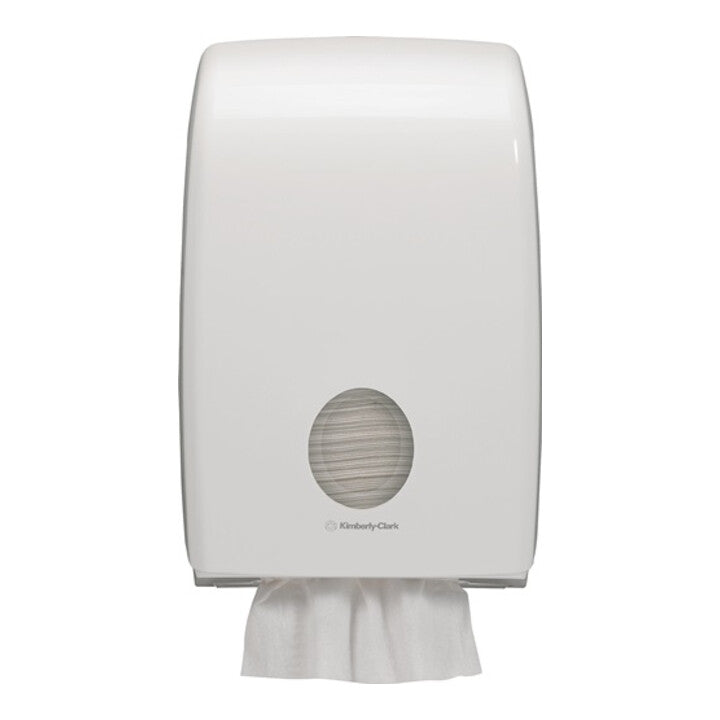 Gehäuse aus schlagfestem Kunststoff · Füllstandsanzeige · abgeschrägte Oberseite verhindert das Ablegen von Gegenständen · einfache Wartung und Befüllung · abschließbar (mit oder ohne Schlüssel) · für AIRFLEX*-Handtücher Interfold · patentierter Überfüllungsschutz garantiert eine einwandfreie Papierentnahme und sparsamen Verbrauch