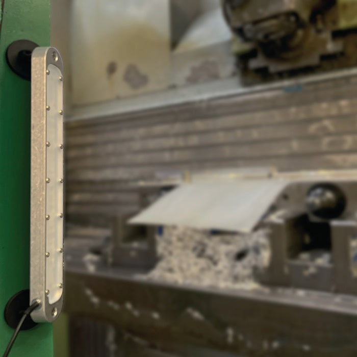 Hochleistungs-LED im Aluminium-Gehäuse, wasserdicht · 120 Grad gleichmäßige Ausleuchtung, blend- und flackerfrei, reflexionsarm · Anschluss an 24 Volt Maschinensteuerung oder mit Netzteil 24 Volt · wasserdicht nach IP67 bis Netzteilkupplung · „Made in Germany“ · flexible Anbringung
