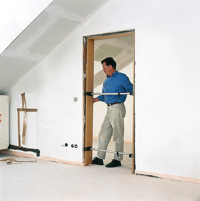 teleskopierbares Aluminium Rundrohr mit Festestellschraube zum genauen Arbeiten, fixiert und stützt Türfutter beim Ausschäumen der Mauerfuge schonend, Klemmteile an den Spannflächen sichern die Strebe im Futter Verkaufsmenge = 1 Strebe