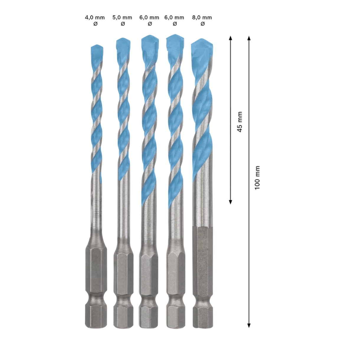 Bosch Expert HEX-9 Multi Construction Bohrer Set 5 tlg. ( 2608900585 ) 4 / 5 / 6 / 6 / 8 mm Centering Geometry