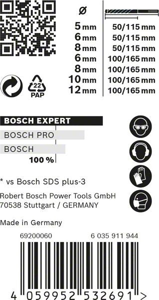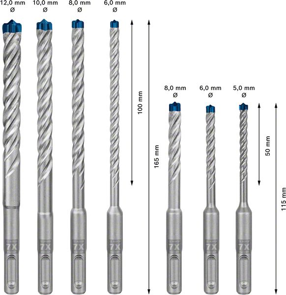- 3x Bosch EXPERT SDS Plus-7X Hammerbohrer 115 mm ( 5 / 6 / 8 mm )