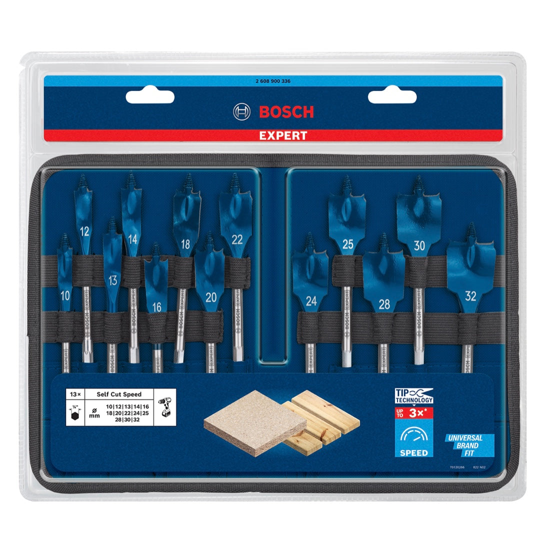 Bosch EXPERT SelfCut Speed Flachfräsbohrer Set 10 - 32 mm 13 tlg. ( 2608900336 ) für Holz - Nachfolger von 2608587010