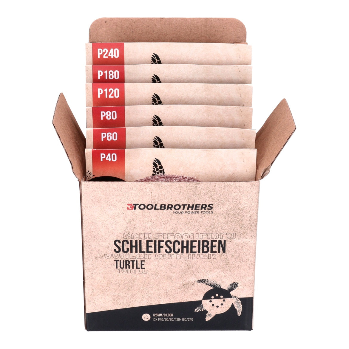Bosch GEX 12V-125 Professional Akku Exzenterschleifer 12 V 125 mm Brushless + 2x Akku 3,0 Ah + Ladegerät + Toolbrothers TURTLE Schleifset + L-Boxx