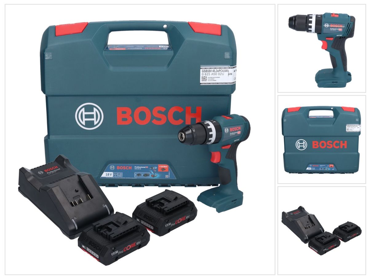 Bosch GSB 18V-45 Professional Akku Schlagbohrschrauber 18 V 45 Nm Brushless + 2x ProCORE Akku 4,0 Ah + Ladegerät + L-Case