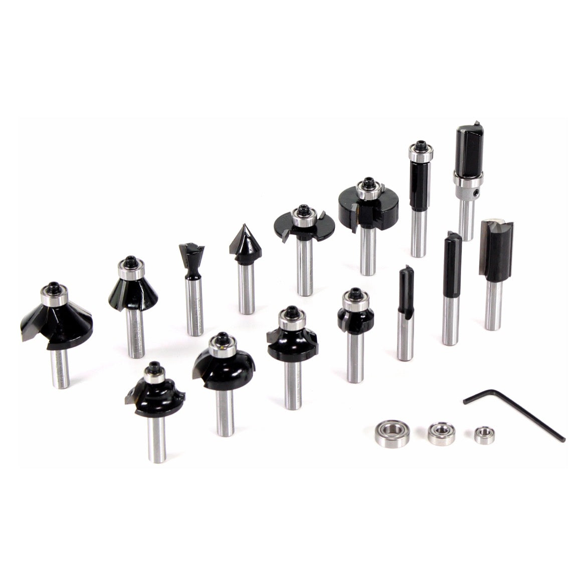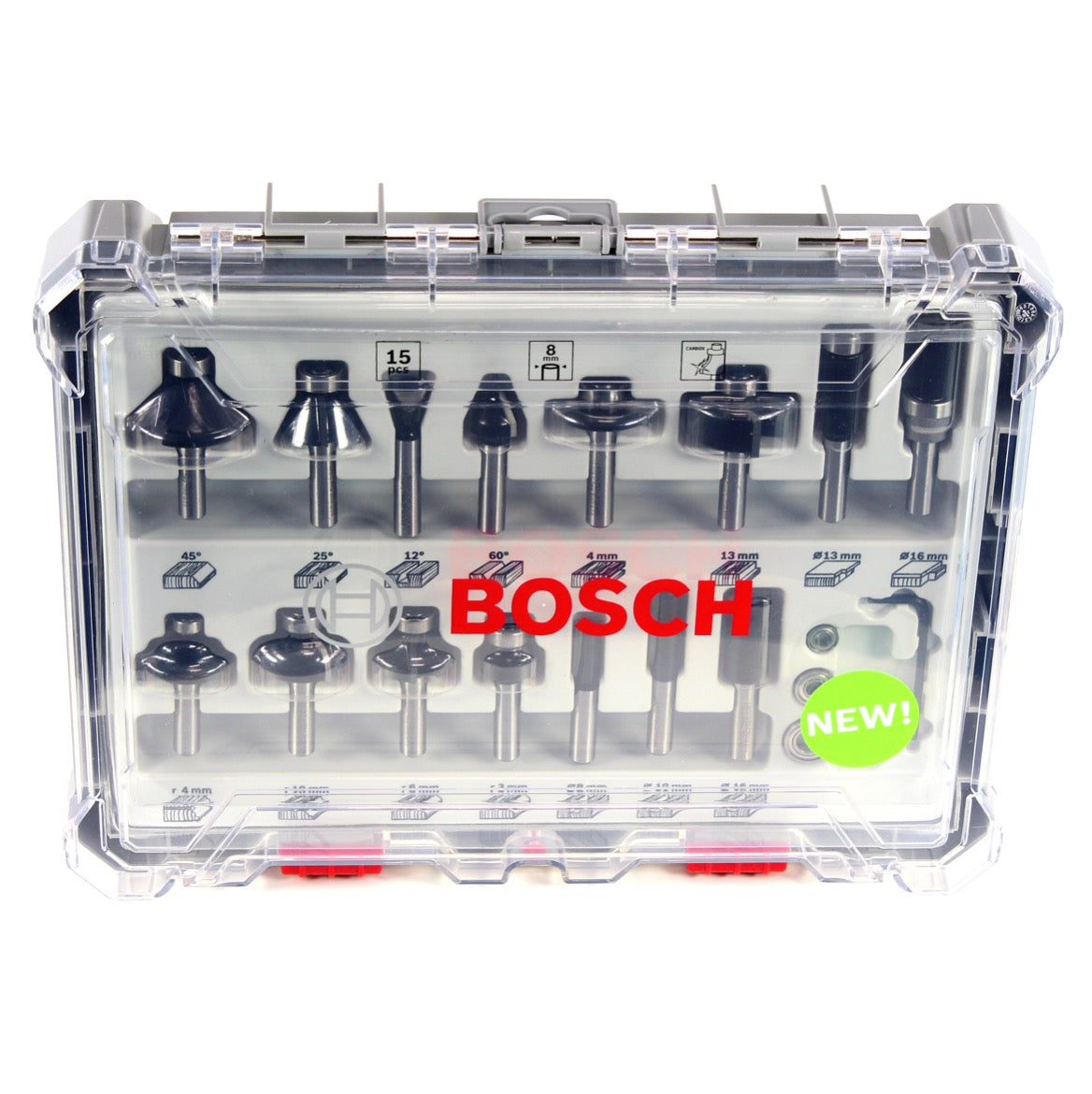 Bosch Mixed Fräser Set 8 mm 15 tlg. + Koffer ( 2607017472 ) für Oberfräsen mit Rundschaft