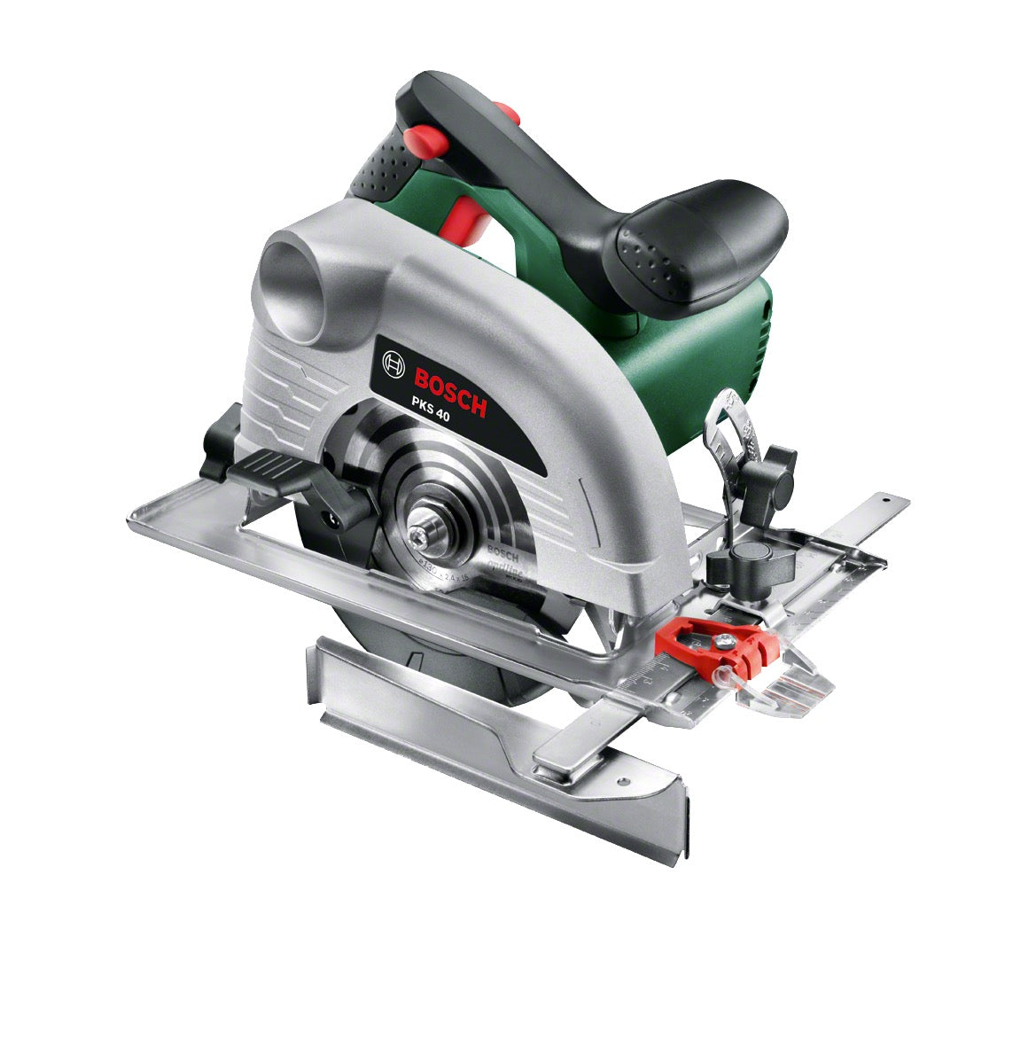 Die PKS 40 ist eine leistungsstarke Handkreissäge, ausgestattet mit einem 850 Watt-Motor. Das ergonomische Design und das geringe Gewicht von etwa 2,6 kg machen das Gerät leicht und sicher führbar, auch von weniger erfahrenen Heimwerkern. Sie eignet sich für alle Art von Sägarbeiten im Haus.  Dank der CutControl Funktion lassen sich äußerst präzise Schnittergebnisse erzielen. Außerdem kommt das Gerät mit einer Spindelarretierung, welche einen Wechsel des Sägeblatts auf Knopfdruck erlaubt. Der verbaute Sicherheitsschalter hat eine Sperrfunktion, was ein versehentliches Einschalten der Säge verhindert. Für weiteren Komfort sorgt die exakte Schnitttiefenverstellung und die Einstellungsmöglichkeit des Gehrungswinkel. Der Handgriff ist mit rutschfesten Softgrip-Auflagen versehen.