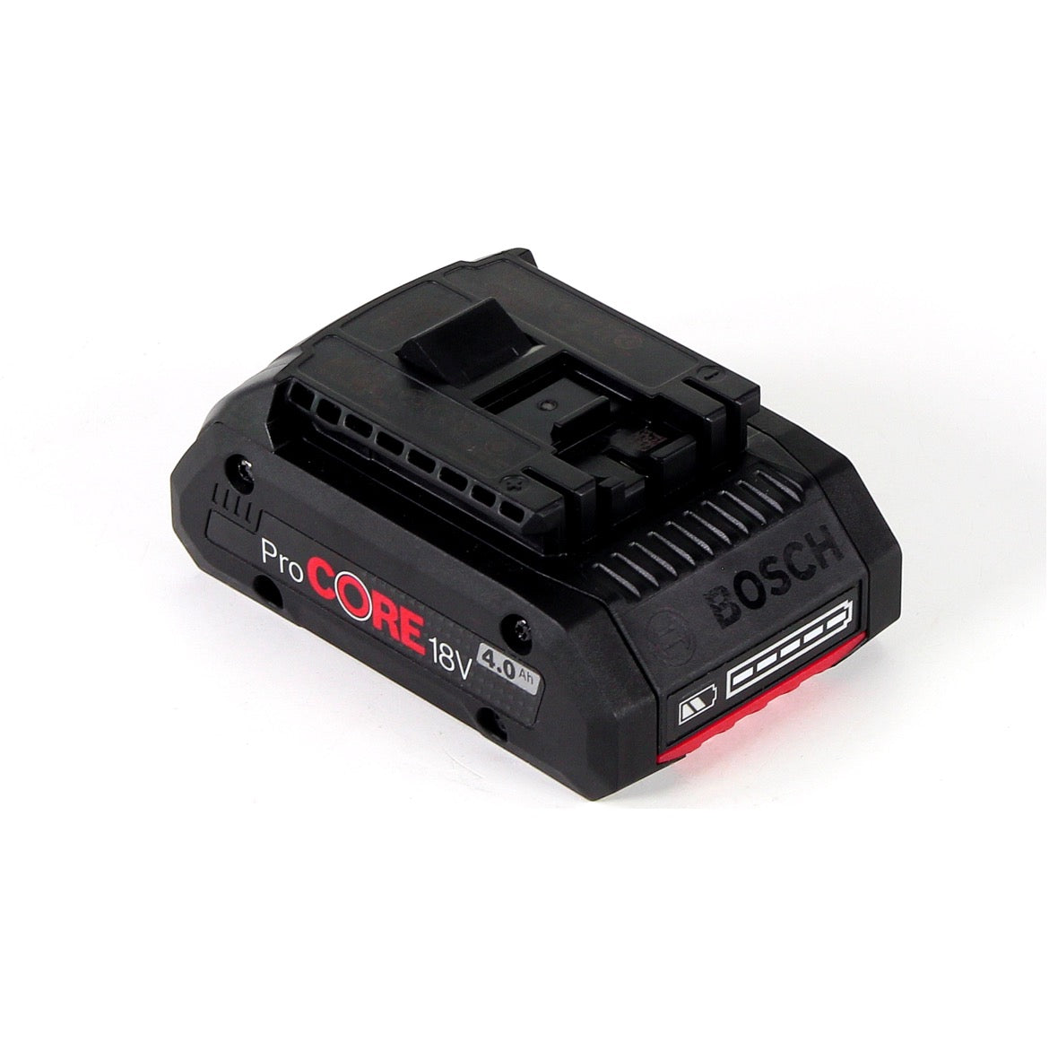 Der Bosch ProCORE Professional ist ein 18 Volt starker Akku mit 4,0 Ah, basierend auf der Li-Ion Technologie. Die ProCORE Technologie überzeugt mit ihrer Leistungsstärke, die mit dem 1600 Watt-Motor eines kabelgebundenen Geräts vergleichbar ist und liefert so genügend Kraft für schwerste Anwendungen mit Akku betriebenen Werkzeugen. Es liefert somit 87% mehr Leistung als normale 18 Volt Akku betriebene Geräte und garantiert durchgehend hohe Leistungen. Dank neuester Zellentechnologie liefert der ProCORE Akku die gleiche Leistung wie ein 4,0 Ah Standardakku – allerdings bei erheblich kleineren Abmessungen und geringerem Gewicht. Dank der COOLPACK-Technologie, besitzt der ProCORE 135 % mehr Lebensdauer als ein Standardakku. Außerdem wird dadurch ein Überhitzen des Akkus vermieden.