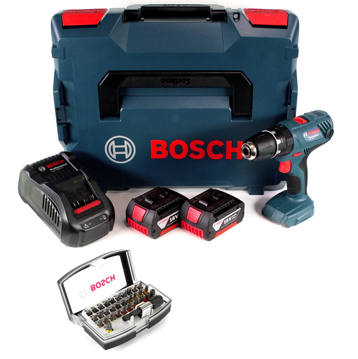 Bosch Professional GSB 18V-21 Akku Schlagbohrschrauber 18V 55Nm + 2x Akku 3,0Ah + Ladegerät + Bit-Set + L-Boxx
