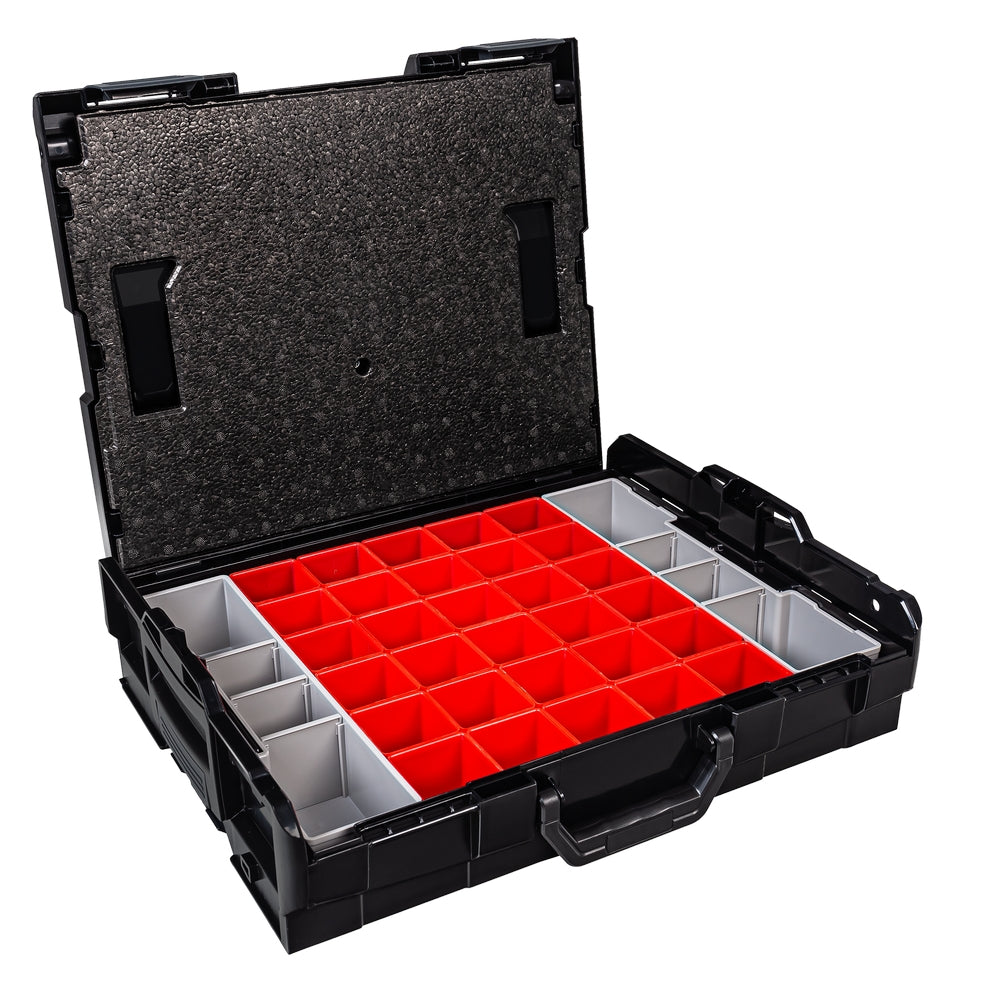 Das Insetboxenset A3 LB 102 bietet Ihnen die ideale Lösung, um Ihre Kleinteile stets gut organisiert im Blick zu behalten. Egal, ob Sie es in Ihrer Werkstatt verwenden oder in Kombination mit dem L-BOXX- oder ProClick-System, diese Insetboxen lassen sich überall formschlüssig einsetzen. Sie bieten eine praktische Lagermöglichkeit für Schrauben, Muttern, Nägel und andere Kleinteile, die Ihnen bei Ihren Arbeiten schnell zur Hand sein sollen. Dank der verschiedenen Größen der Insetboxen können Sie die Boxen nach Ihren individuellen Bedürfnissen anpassen und somit Ihre Arbeitsabläufe optimieren.