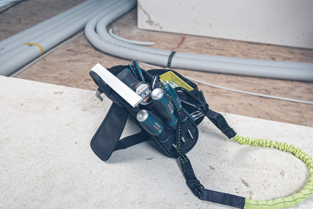 Ein Highlight der ProClick Tool Pouch L 36 ist die fest integrierte ClickUnit. Diese innovative Funktion ermöglicht es Ihnen, die Werkzeugtasche mühelos und intuitiv mit einem Fingertipp an den patentierten ProClick Holder anzuklicken und wieder abzunehmen. Dadurch haben Sie Ihre Werkzeuge immer sicher und griffbereit, ohne lange danach suchen zu müssen.