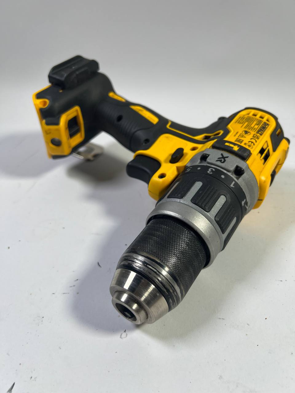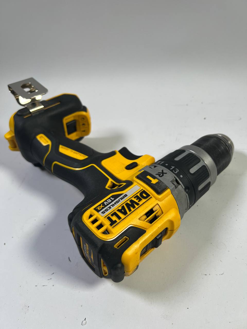 Der DeWalt Schlagbohrschrauber sorgt mit einem kraftvollen Hochleistungsmotor auch bei schwersten Anwendungen für angenehmes Arbeiten. Sein bürstenloser Motor (brushless) arbeitet ohne Kohlebürsten und daher absolut verschleißfrei. Dies erhöht seinen Wirkungsgrad deutlich und der Akku muss weniger oft geladen werden. Das elegant abgestimmte 2-Gang-Vollmetallgetriebe macht effizientes Arbeiten noch einfacher. Ein zuschaltbares Schlagwerk ermöglicht schwere Bohrarbeiten in Stein und Mauerwerk. Der Schlagbohrschrauber liegt durch eine kompakte und ausbalancierte Bauweise sehr gut in der Hand. Der gummierte und ergonomisch angepasste Handgriff sorgt zusätzlich für Sicherheit und Komfort. Die neu eingebaute innovative 3-Stufen-LED überzeugt mit einer Lichtstärke von 77 Lumen und optimal ausgerichtetem Lichtkegel. Die Sicherheitselektronik ermöglicht den problemlosen Langzeiteinsatz, wobei die Akku-Temperatur, die Stromentnahme und der Entladeschutz permanent überprüft werden. Der Artikel ist gebraucht, aber noch in gutem Zustand. Habe auf der linken Seite einen leichten Kratzer, der fast unsichtbar ist