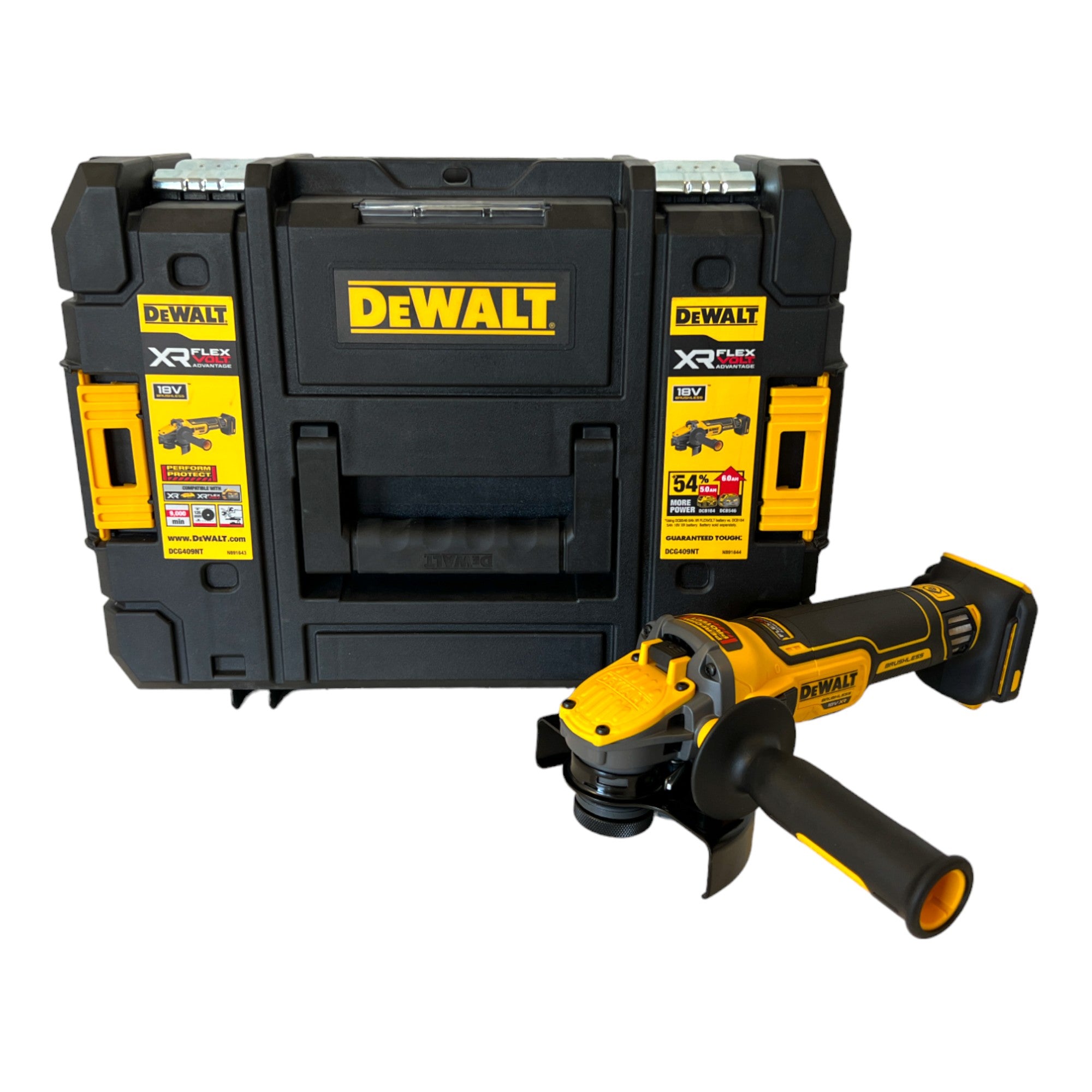 Der DeWalt DCG 409 Akku Winkelschleifer ist das Werkzeug für anspruchsvolle Aufgaben. Mit seiner FlexVolt Advantage-Technologie bietet er doppelten Vorteil gegenüber herkömmlichen Winkelschleifern, denn er kann nicht nur mit 18 Volt XR-Akkus betrieben werden, sondern auch mit XR FlexVolt Akkus. Dank innovativer bürstenloser Motor-Technologie überzeugt der DCG 409 mit höherer Leistung und Lebensdauer, kompakteren Abmessungen und einer längeren Laufzeit pro Akkuladung. Zusätzlich sind die Wicklungen des Motors mit Epoxyd-Harz gepanzert, um ihn vor abrasiven Staubpartikeln zu schützen. Ein optimiertes Lüftersystem sorgt dafür, dass Winkelschleifer und Elektronik auch bei intensiver Nutzung effektiv gekühlt werden und somit die Lebensdauer des Geräts erhöht wird. Doch auch in Sachen Sicherheit setzt der DCG 409 Maßstäbe. Mit der elektronischen Bremse wird die Scheibe in Sekundenschnelle gestoppt, um Verletzungen zu vermeiden. Die elektronische Kupplung schaltet das Gerät automatisch ab, falls es zu Blockierungen kommt und schützt so sowohl den Anwender als auch die Maschine. Durch die Kombination aus elektronischer Kupplung und Bremse werden auch Kickbacks noch effektiver minimiert. Zusätzlich sorgt der elektronische Sanftanlauf dafür, dass die Maschine nicht ruckartig startet. Ein Überlastschutz ist ebenfalls integriert, um Anwender und Maschine vor Überlastung zu schützen. Die Kühlluftschlitze des Motors werden von einem robusten Schutzgitter geschützt, um grobe Staubpartikel abzuhalten. Die Schnellspannmutter ermöglicht einen schnellen und werkzeuglosen Zubehörwechsel, während die werkzeuglose Schutzhauben-Schnellverstellung eine einfache und unkomplizierte Anpassung der Schutzhaube ermöglicht. Und für optimalen Anwender-Komfort ist der Handgriff gummiert, um ein angenehmes Arbeiten zu gewährleisten. Der DeWalt DCG 409 Akku Winkelschleifer bietet nicht nur beeindruckende Leistung und Langlebigkeit, sondern auch erstklassige Sicherheitsfunktionen und Komfort. Perfekt für alle, die bei ihren Projekten keine Kompromisse eingehen wollen.