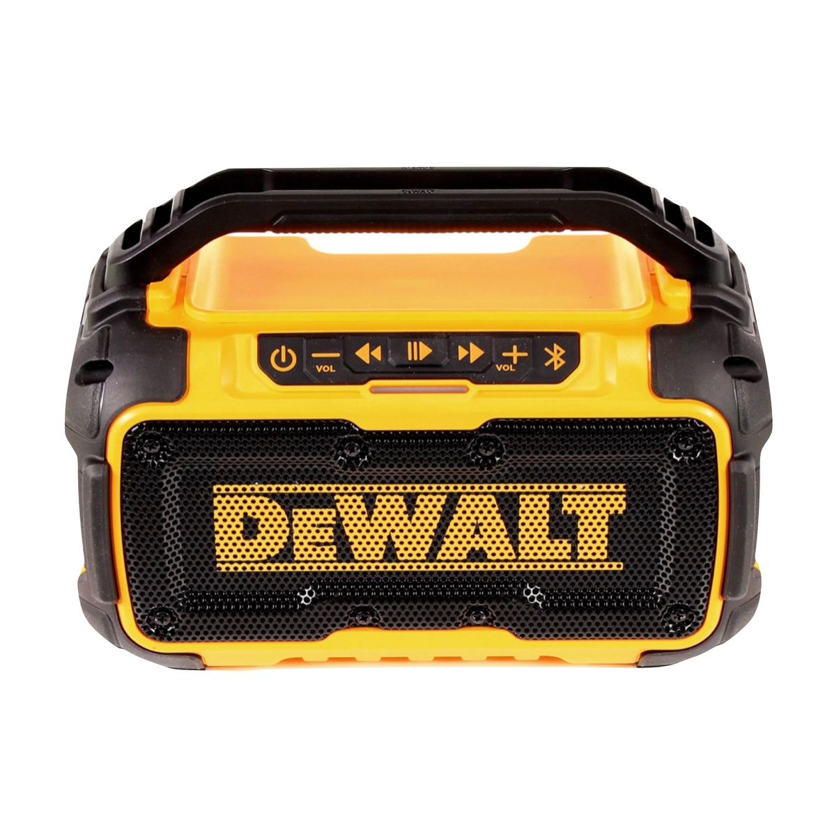 Der praktische DeWalt DCR 011 Akku-Lautsprecher besticht durch eine hohe Lautstärke bei guter Soundqualität. Der Lautsprecher ermöglicht eine Verbindung mit einem Handy mit bis zu 30 Metern Entfernung. Der DCR 011 verfügt über gummierte Kannten und Befehlsknöpfe, sodass mögliche Schäden am Gerät minimiert werden. Es kann mit allen gängigen DeWalt Einschub-Akkus mit 10,8, 14,4 und 18 V betrieben werden. An der Seite ist ein USB-Anschluss angebracht, mit dem kleinere Elektronikgeräte wie Handys oder MP3-Player aufgeladen werden können.