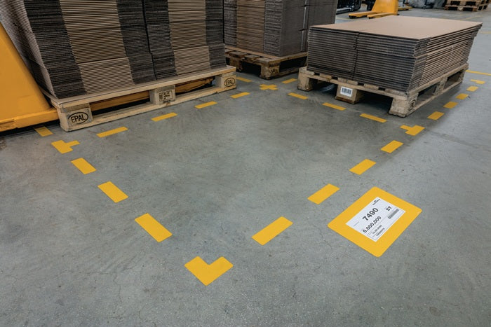 selbstklebendes Bodenmarkierungsfenster zur Kennzeichnung durch Papiereinlagen A5 · wieder ablösbar · einfache Anbringung: Papier wird unter die Beschriftungstasche gelegt und bleibt durch die Rundumverklebung geschützt · anwendbar im Hoch- und Querformat