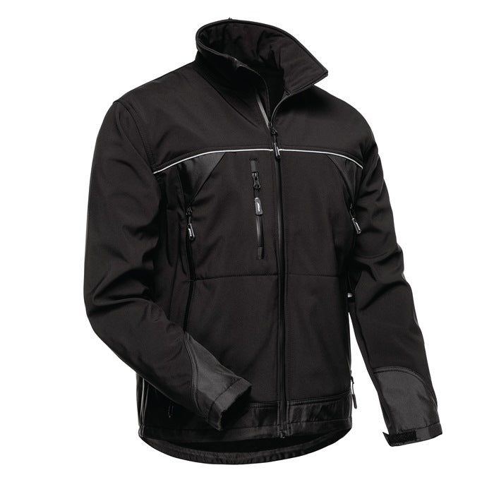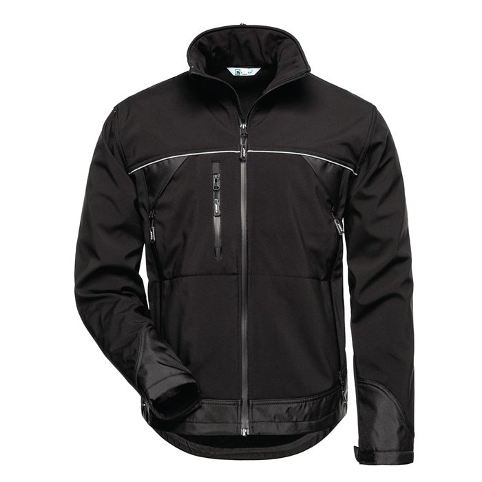 Obermaterial: 96% Polyester, 4% Elastan, 3-Lagenlaminat (Softshell) · Einsatz an Saum und Ärmelsaum: 100% Polyester, Oxford · Softshell-Material ist wind- und wasserdicht sowie atmungsaktiv · alle Reißverschlüsse wasserdicht · Wassersäule: 8000 mm · Atmungsaktivät: 1000 g/m²/24h · hoch abriebfestes und robustes Softshellmaterial · angenehm zu tragen durch Fleecematerial innen in der Jacke · Reflexpaspel vorne · Saum und Ärmelsaum weitenverstellbar · Reißverschluss-Ende mit Kinnschutz · aufwändige Innenverarbeitung · verstellbarer Kragenabschluss
