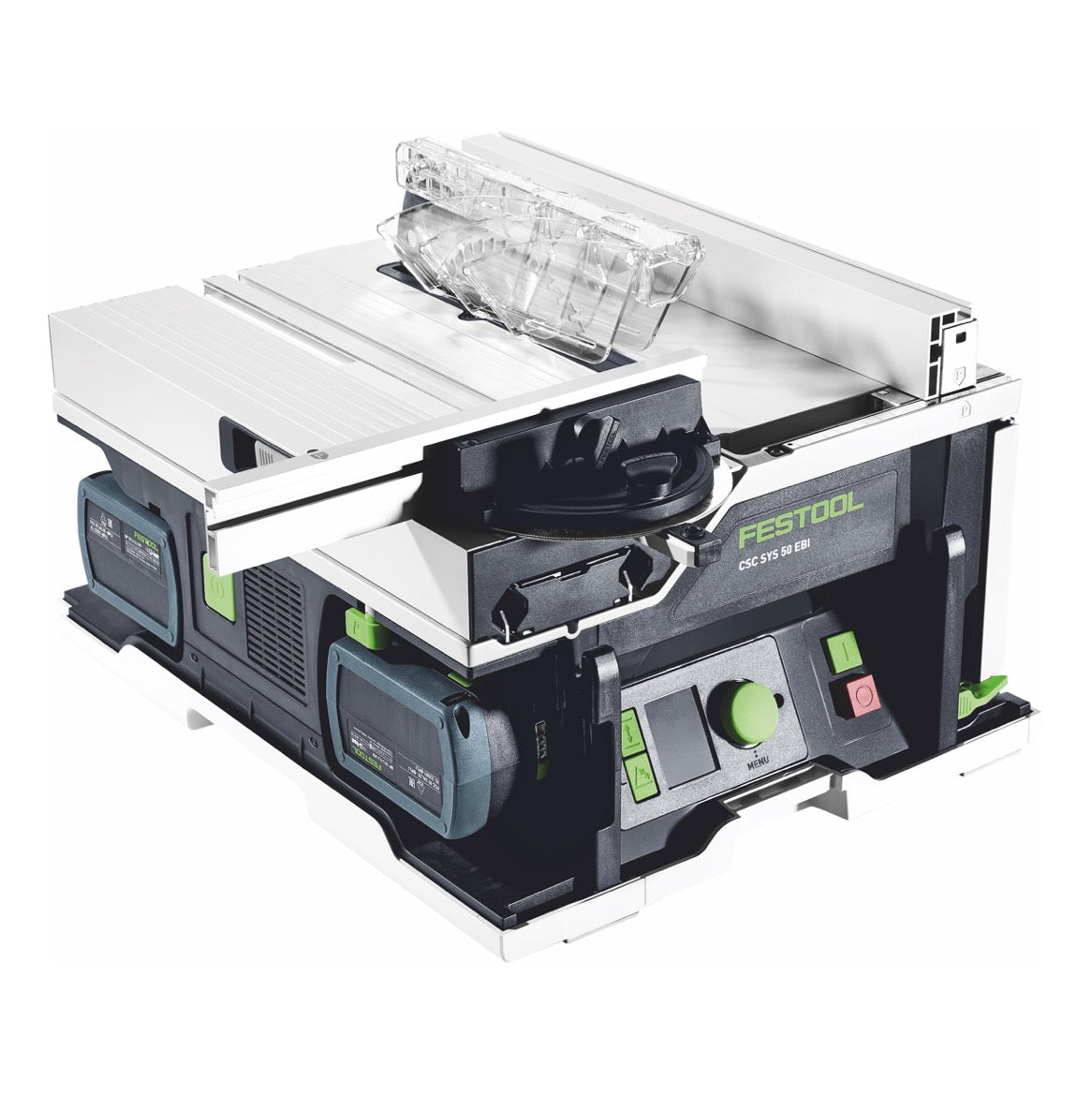 Festool CSC SYS 50 EBI-Plus Akku Tischkreissäge 36 V ( 2x 18 V ) ( 577374 ) 168 mm Brushless + 2x Akku 5,0 Ah + Ladegerät + Systainer