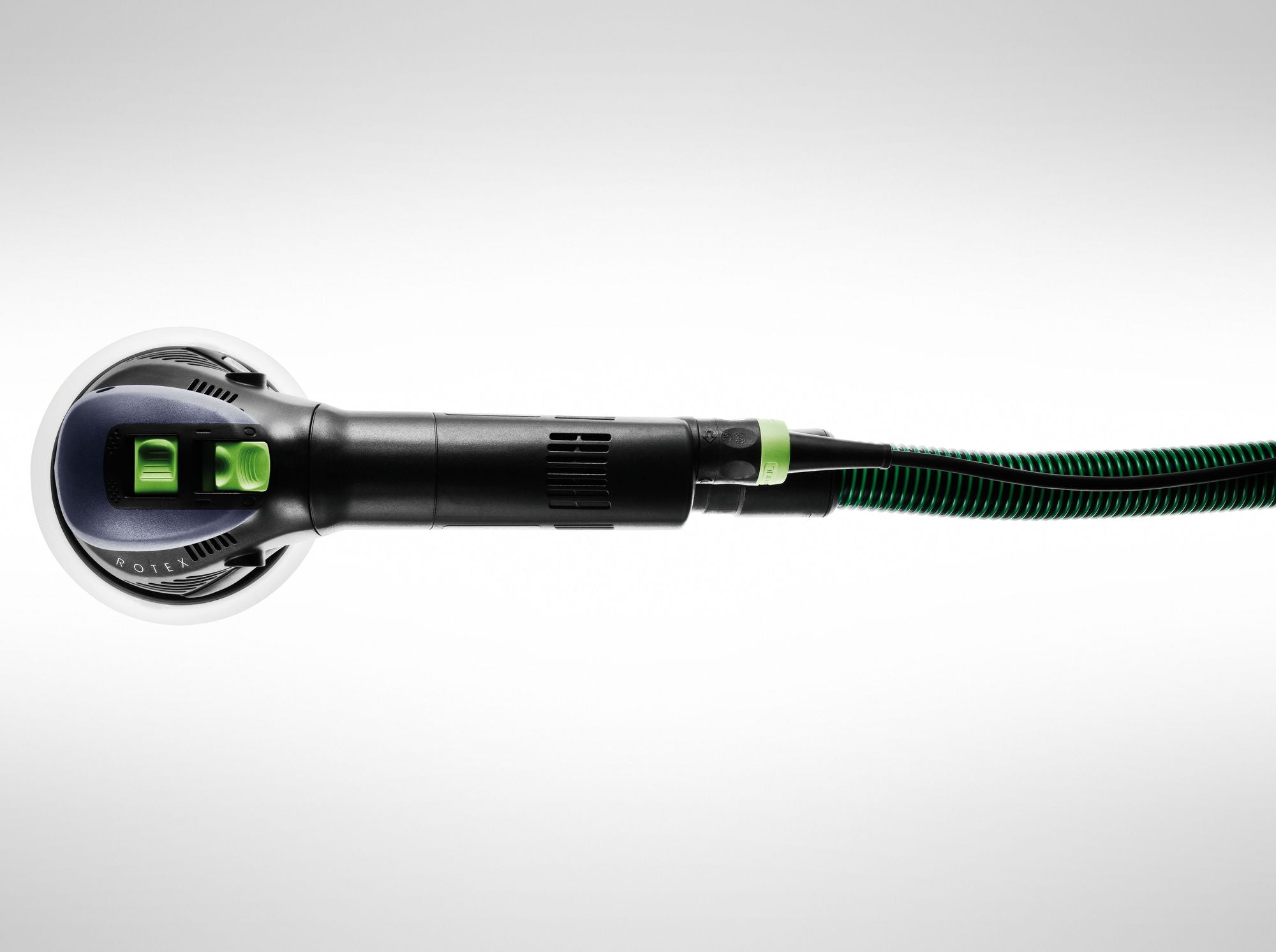 Der Festool RO 150 FEQ Getriebe-Exzenterschleifer ROTEX (575066) vereint drei Geräte in einem: Grobschleifen, Feinschleifen und Polieren. Dieses vielseitige Werkzeug bietet starke Abtragsleistung beim Grobschliff, feinste Ergebnisse beim Feinschliff und ein perfektes Finish beim Polieren. Dank des FastFix Schleiftellerwechsels lassen sich Schleifteller schnell und werkzeuglos austauschen. Die Exzenterbewegung sorgt für hochwertige, riefenfreie Oberflächen, während der Protector randnahes Schleifen ermöglicht. Ergonomische Griffpositionen gewährleisten komfortables Arbeiten, und die ROTEX Kurvenbahn garantiert einen besonders starken Abtrag. Ideal für Anwendungen wie das Abschleifen alter Farben, die Bearbeitung von Holzwerkstoffen, das Schleifen von Treppenstufen und das hologrammfreie Polieren von Oberflächen. Kombiniert mit dem Schleifmittel Granat und einem Absaugmobil spart der ROTEX sowohl Kosten als auch Zeit.