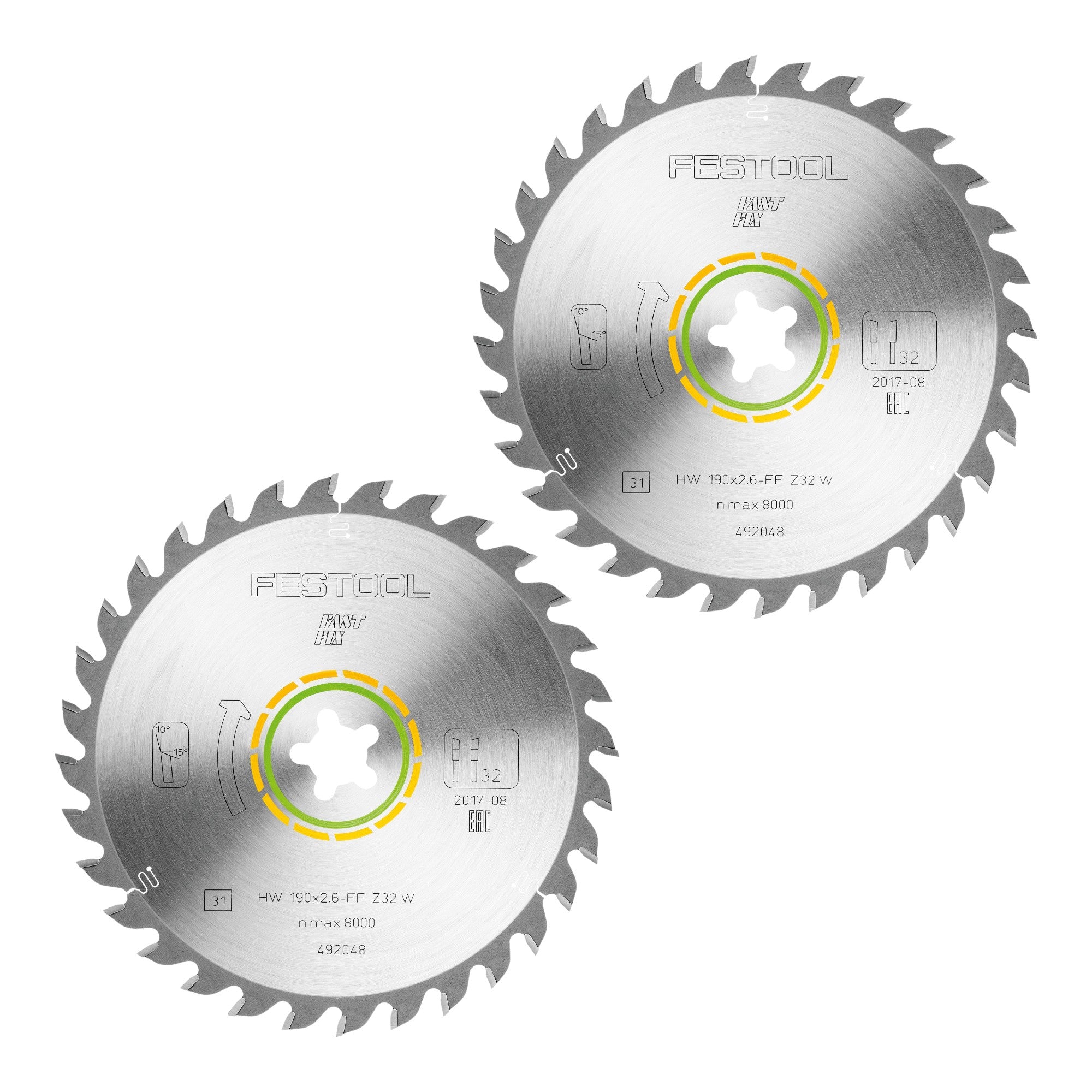 Festool HW 190x2,6 FF W32 Kreissägeblatt WOOD UNIVERSAL 2 Stk. ( 2x 492048 ) 190 x 2,6 mm 32 Zähne für alle Hölzer, Holzwerkstoffe, Baustoffplatten, Gipsfaserplatten, weiches Kunststoff