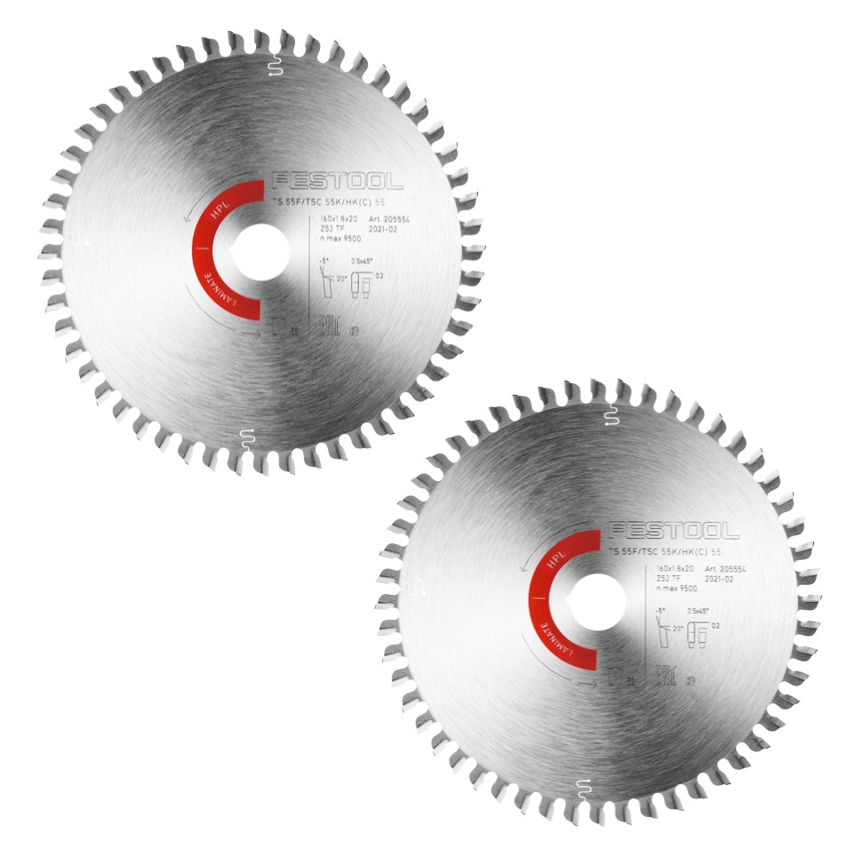 Festool Kreissägeblatt 2x Laminate/HPL HW 160 x 1,8 x 20 TF52 ( 2x 205554 ) für Tauchsägen TS 55 F, TSC 55 K & Handkreissägen HK 55, HKC 55