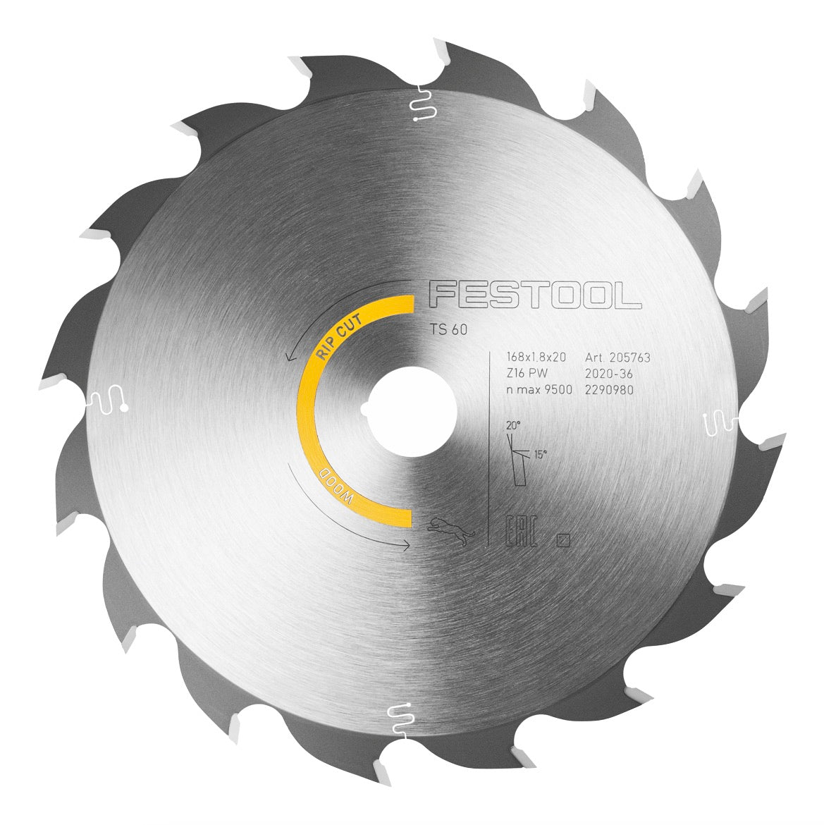 Festool Kreissägeblatt Wood Rip Cut HW 168 x 1,8 x 20 PW16 ( 205763 ) für TS 60 K, CSC-SYS 50