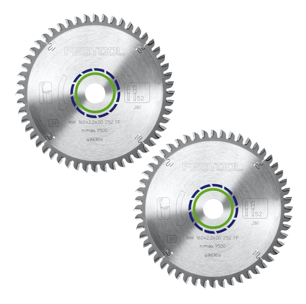 Festool Spezial Kreissägeblatt Set 2x HW 160 x 20 x 2,2 mm TF52 ( 2x 496306 ) 160 mm 52 Zähne