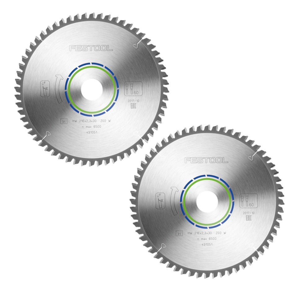 Festool Spezial Kreissägeblatt Set 2x HW 216 x 30 x 2,3 mm W60 ( 2x 491051 ) 216 mm 60 Zähne