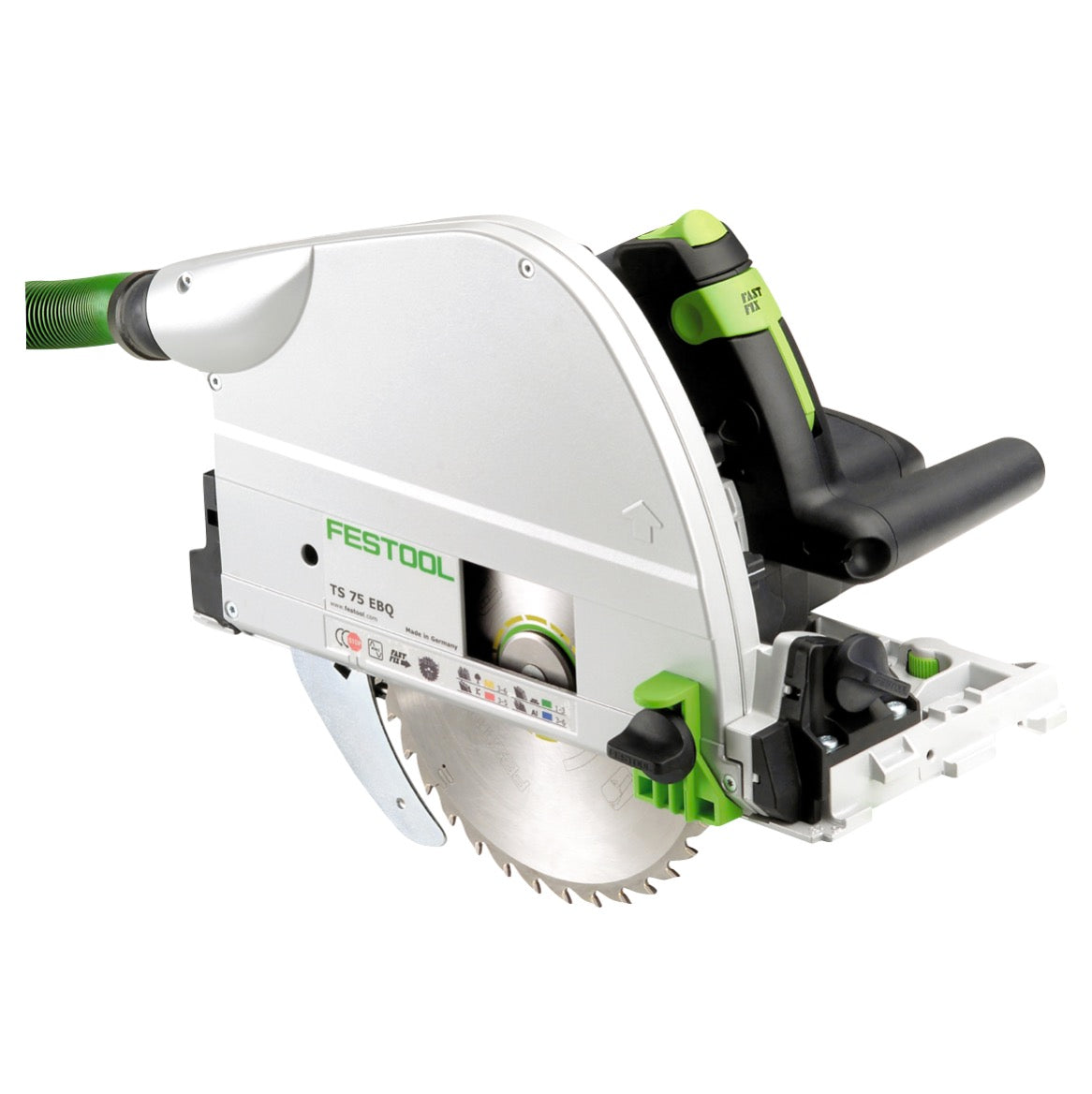Die Firma Festool bietet mit der TS 75 EBQ  eine Tauchsäge die ideal für präzise Tauchschnitte bei einer Materialstärke von bis zu 75 mm ausgelegt ist und sich perfekt eignet für das Ablängen von Haustüren und Kabelkanälen, das Zusägen und Bearbeiten von Wintergarten-Profilen und Bürodoppelböden sowie das Bearbeiten von Sandwichplatten im Hallenbau. Das FastFix Sägeblattwechselsystem sorgt für einen einfachen und schnellen Sägeblattwechsel sowie materialgerechtes Arbeiten. Der federnd gelagerte Spaltkeil sorgt gleichzeitig für ungehinderte Tauschnitte. Durch den aufsteckbaren Splitterschutz erzielen Sie ein hochwertiges Arbeitsergebnis und die Schnell-Bremse sorgt für ein sicheres und komfortables Arbeiten. Die Firma Festool ist ein führender Hersteller für Elektrowerkzeuge aller Art, der sich vor allem durch seine hohe Verarbeitungsqualität und seine ausgeklügelten Konzepte auszeichnet.
