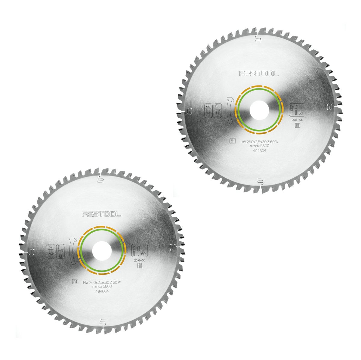 Festool Universal Sägeblatt W60 260 x 2,5 x 30 mm 2 Stück ( 2x 494604 ) für Kapp Zugsäge KS 120 und KS 88