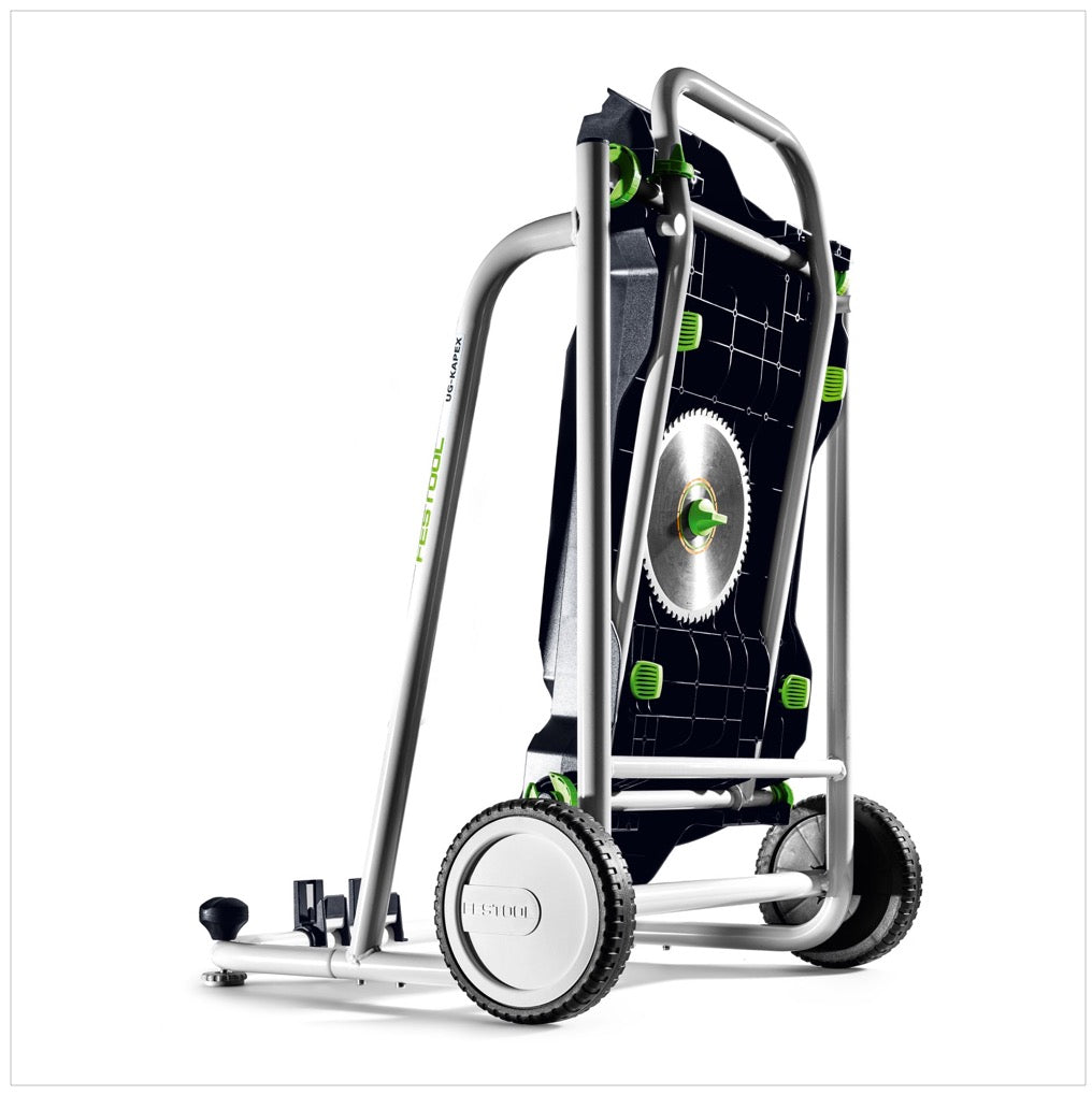 Das Festool UG-KS 60 Untergestell (200129) macht Ihre KAPEX KS 60 noch mobiler und erleichtert den Transport sowie die Arbeit auf der Baustelle oder Montage. Mit den angebrachten Rollen lässt sich die Säge komfortabel und mühelos von einem Ort zum anderen bewegen. Dank der durchdachten Klappmechanik kann die Säge schnell eingeklappt und mit minimalem Kraftaufwand transportiert werden. Das Untergestell bringt die Säge auf eine ergonomische Höhe, die ein rückenschonendes Arbeiten ermöglicht. Zusätzlich unterstützt es durch die Möglichkeit, präzise Schnitte mit einer Schnittlänge von bis zu 2,4 m mit den passenden Kappanschlägen KA-UG-R und KA-UG-L auszuführen. Die Adapterplatte UG-AD-KS 60 sorgt für eine einfache Montage und bietet Platz für ein weiteres Sägeblatt in der integrierten Sägeblattgarage. Ideal für den Einsatz auf der Baustelle, für mehr Flexibilität und Mobilität.