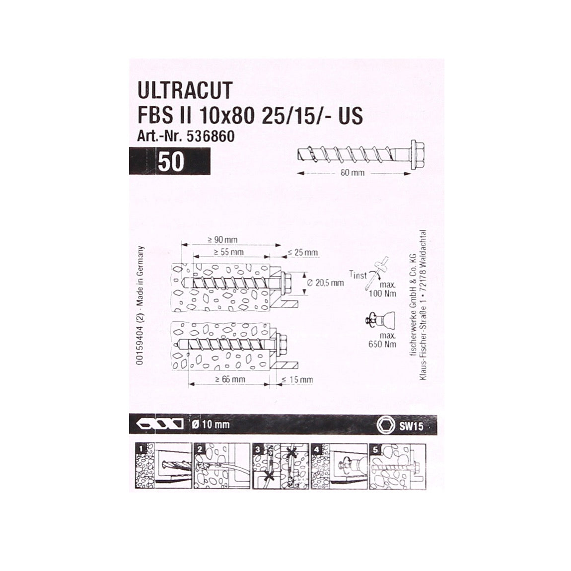 - 1x Fischer ULTRACUT FBS II Betonschrauben 10x80mm 25/15/- 100 Stk. ( 2x 536860 )