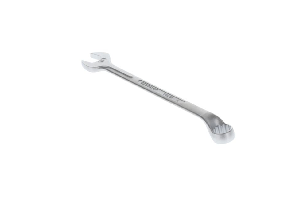 CV-Stahl · verchromt · mit gleichen Schlüsselweiten · Ringseite gekröpft und 10° abgewinkelt, Maulstellung 15° DIN 3113 Form B / ISO 3318 / ISO 7738