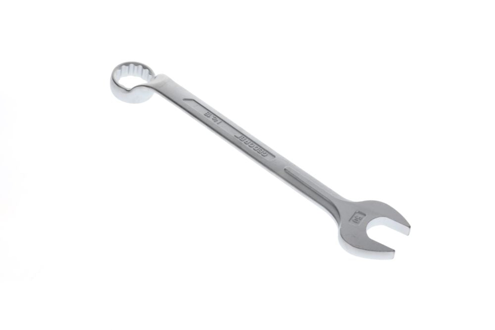 CV-Stahl · verchromt · mit gleichen Schlüsselweiten · Ringseite gekröpft und 10° abgewinkelt, Maulstellung 15° DIN 3113 Form B / ISO 3318 / ISO 7738