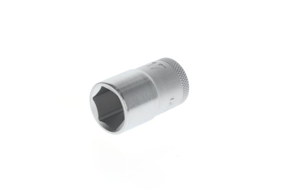12,5 mm (1/2 ″)-Vierkantantrieb · 6-kant · Vanadiumstahl · verchromt · gerändelt · mit Kugelfangrille · DIN 3124 / ISO 2725-1 Innenvierkantantrieb nach DIN 3120-C 12,5 / ISO 1174