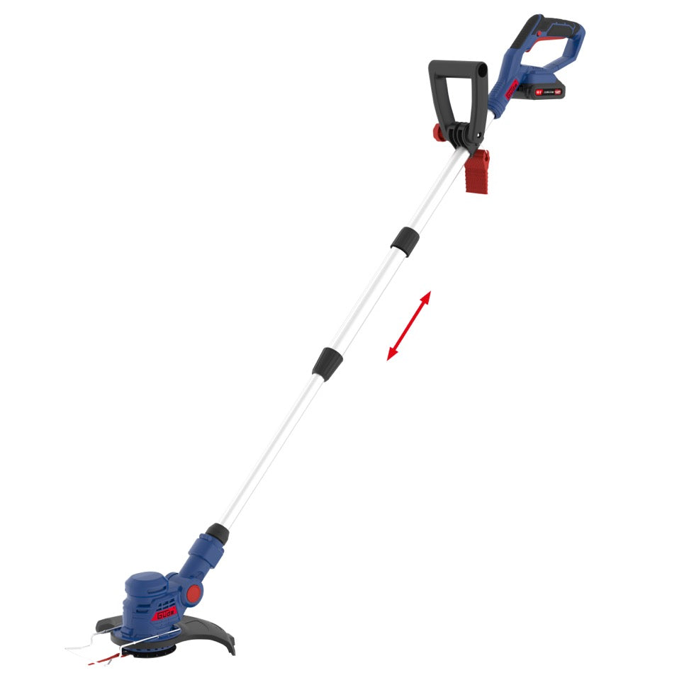 Der RT 18-201-05 von Güde ist ein leistungsstarker Akku Rasentrimmer aus der 18 V Akkusystem Gruppe für den Einsatz rund ums Haus und Garten. Durch den um 180° drehbaren und 5-fach neigbaren Trimmerkopf lassen sich auch Rasenkanten einfach und sauber schneiden. Die Kombination aus dem ausziehbaren ( teleskopierbar ) Führungsholm und dem stufenlos verstellbaren Zusatzhandgriff ermöglicht eine individuelle Anpassung. Die Ersatzmesser lassen sich platzsparend am Zusatzhandgriff verstauen. Güde ist ein führender Hersteller für Elektrowerkzeuge, eine lange Tradition und hohe Qualitätsstandards zeichnen das Unternehmen aus.