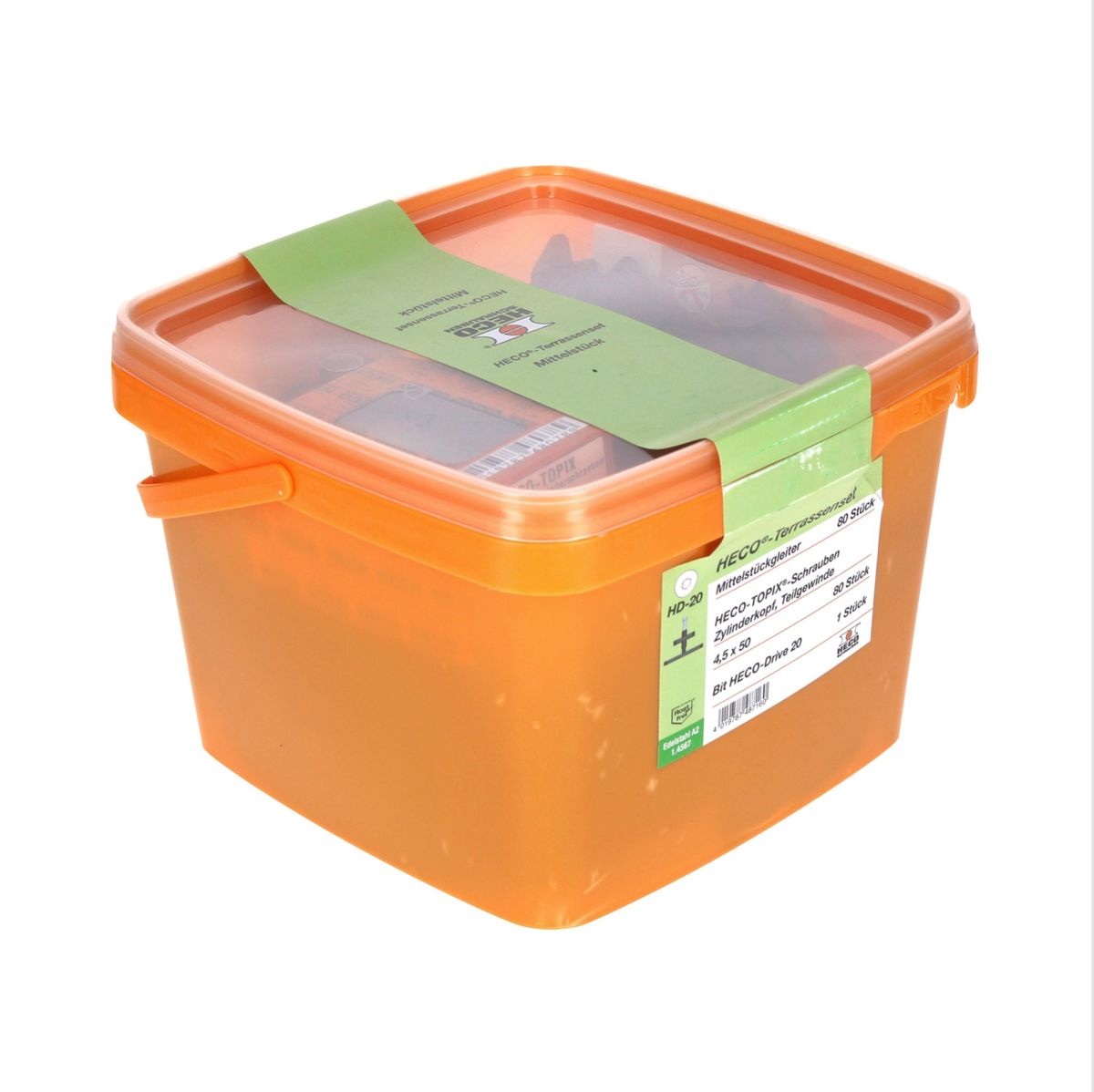 HECO Terrassengleiterset Mittelstück 80 tlg. ( 48716 ) mit HECO TOPIX 4,5 x 50 mm HD 20 Schrauben Set in Kunststoffbox